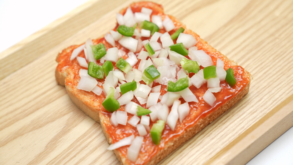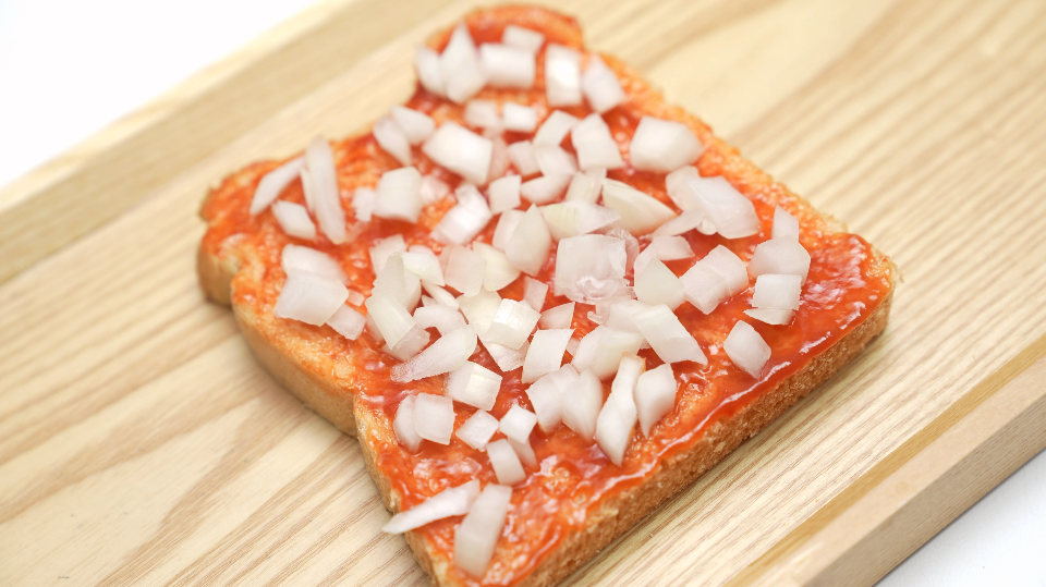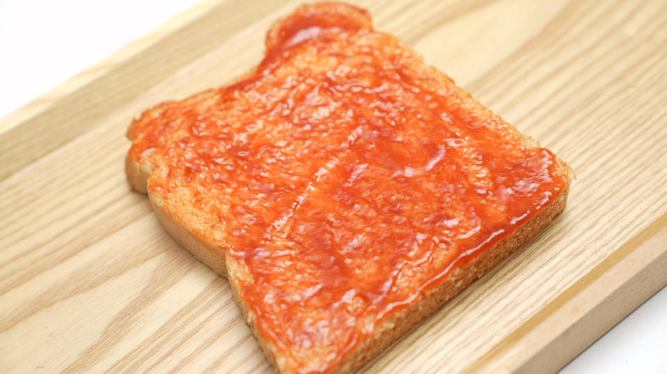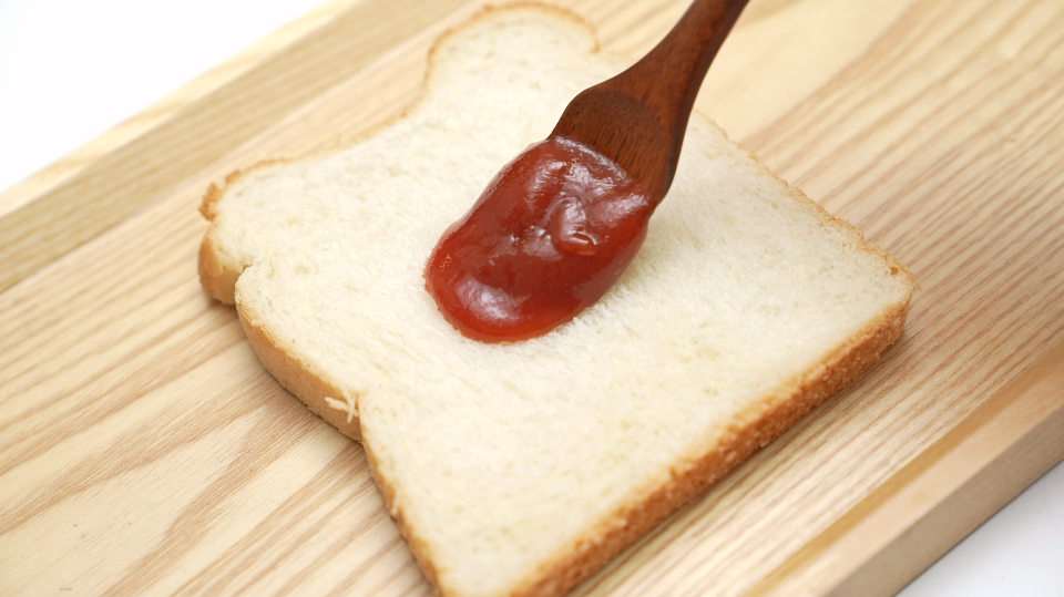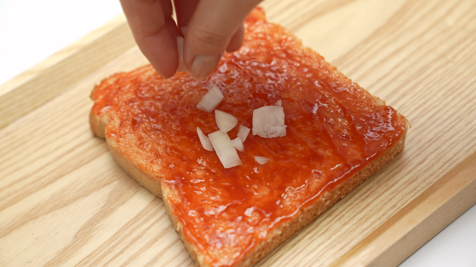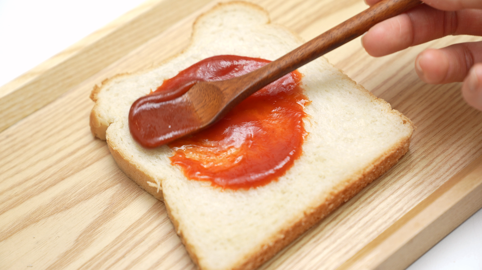 2. 식빵에 토마토케첩을 고루 발라주세요.