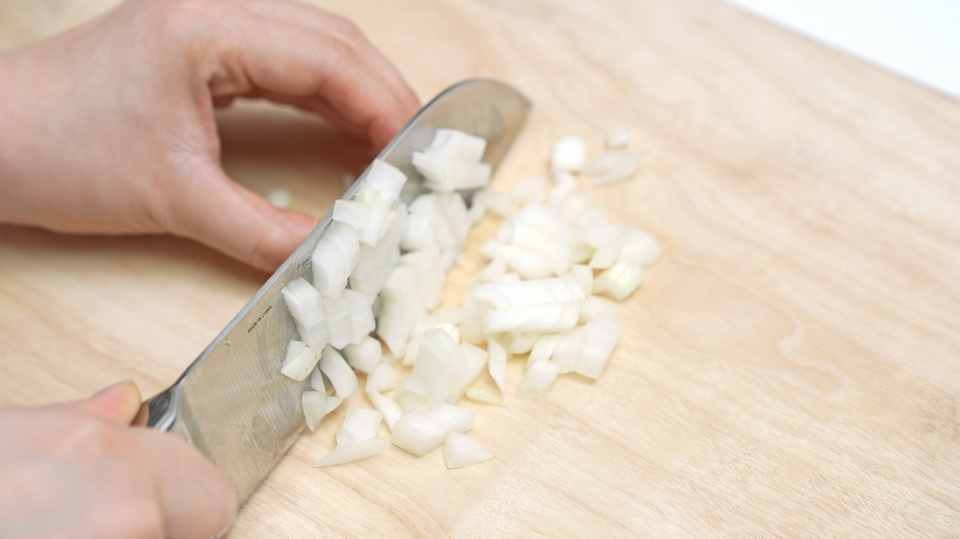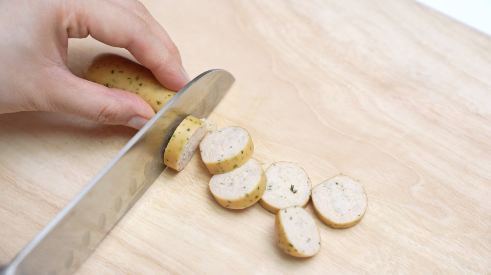 소시지는 먹기 좋은 크기로 너무 두껍지 않게 썰어주세요.