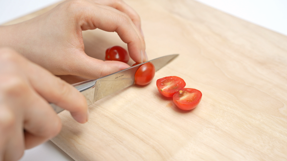 방울토마토는 반으로 잘라주세요.