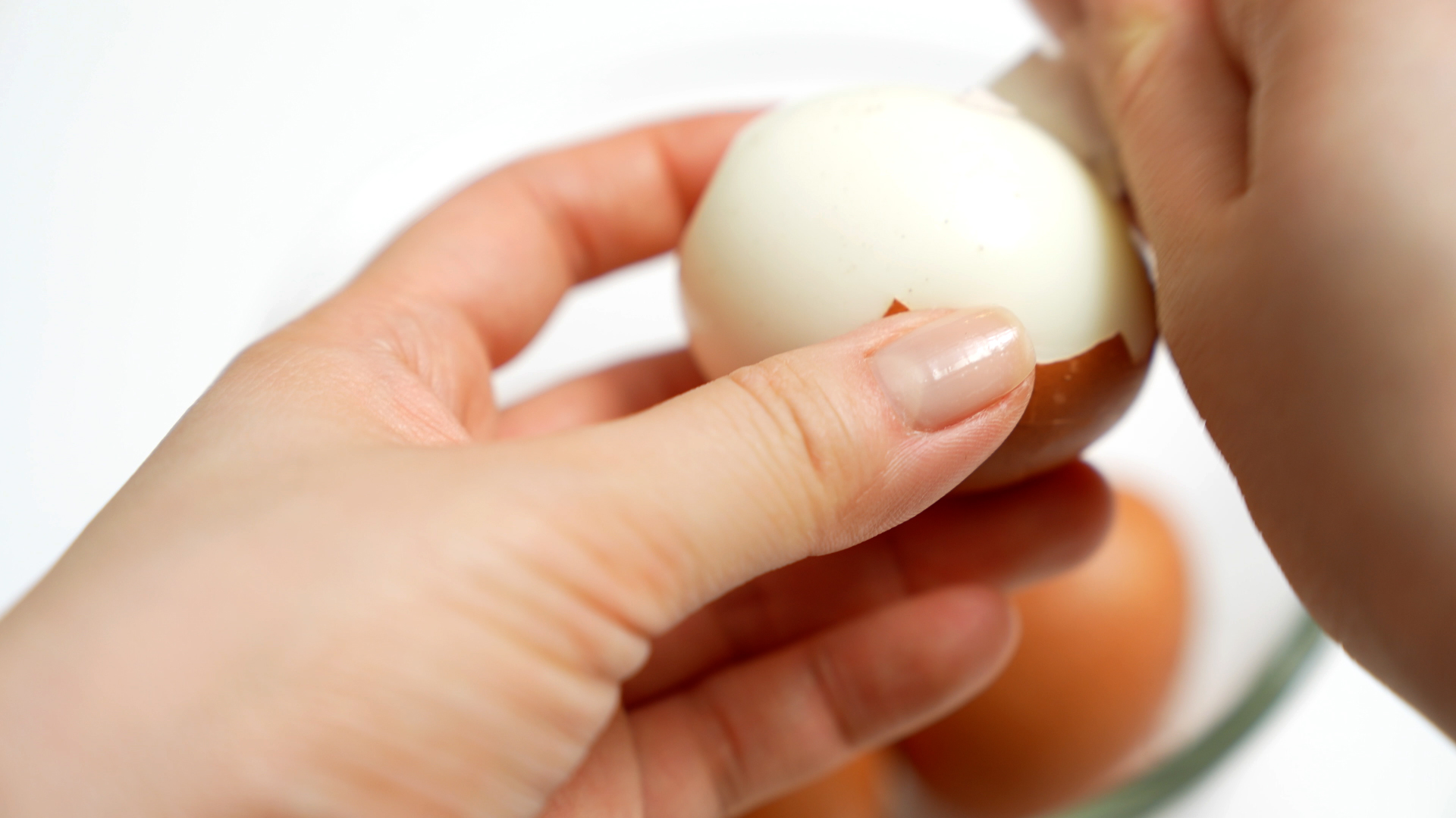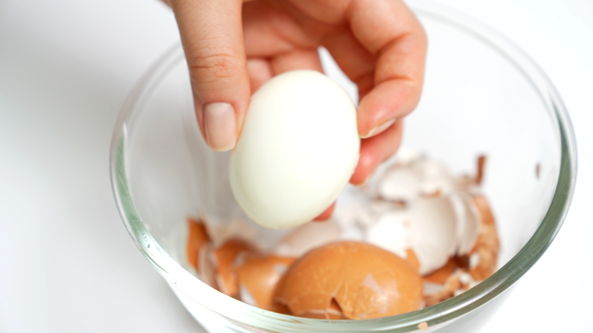 반숙계란은 껍질이 잘 안 벗겨져 자칫 못난이 계란이 될 수 있어요.