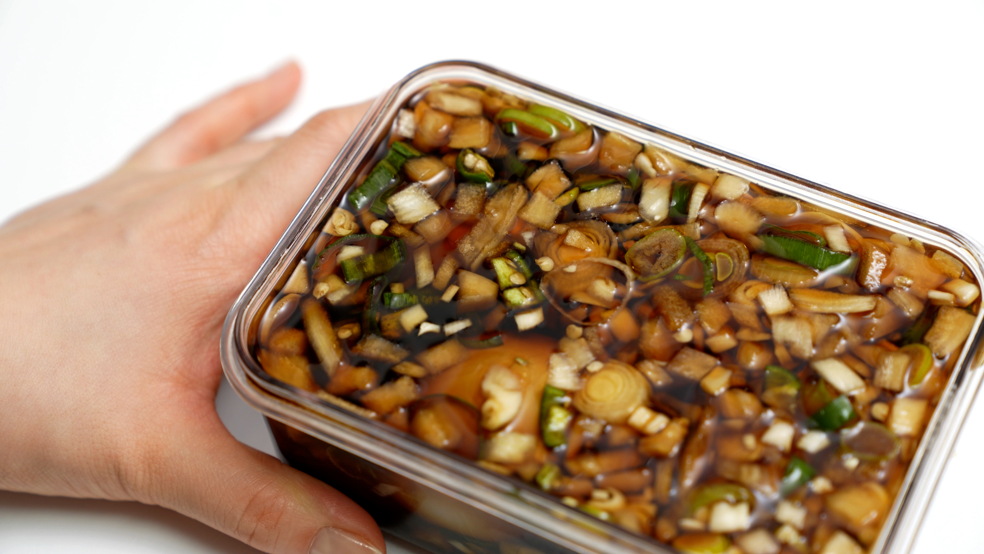 뚜껑을 닫고 냉장고에 반나절 이상 재워주세요.
