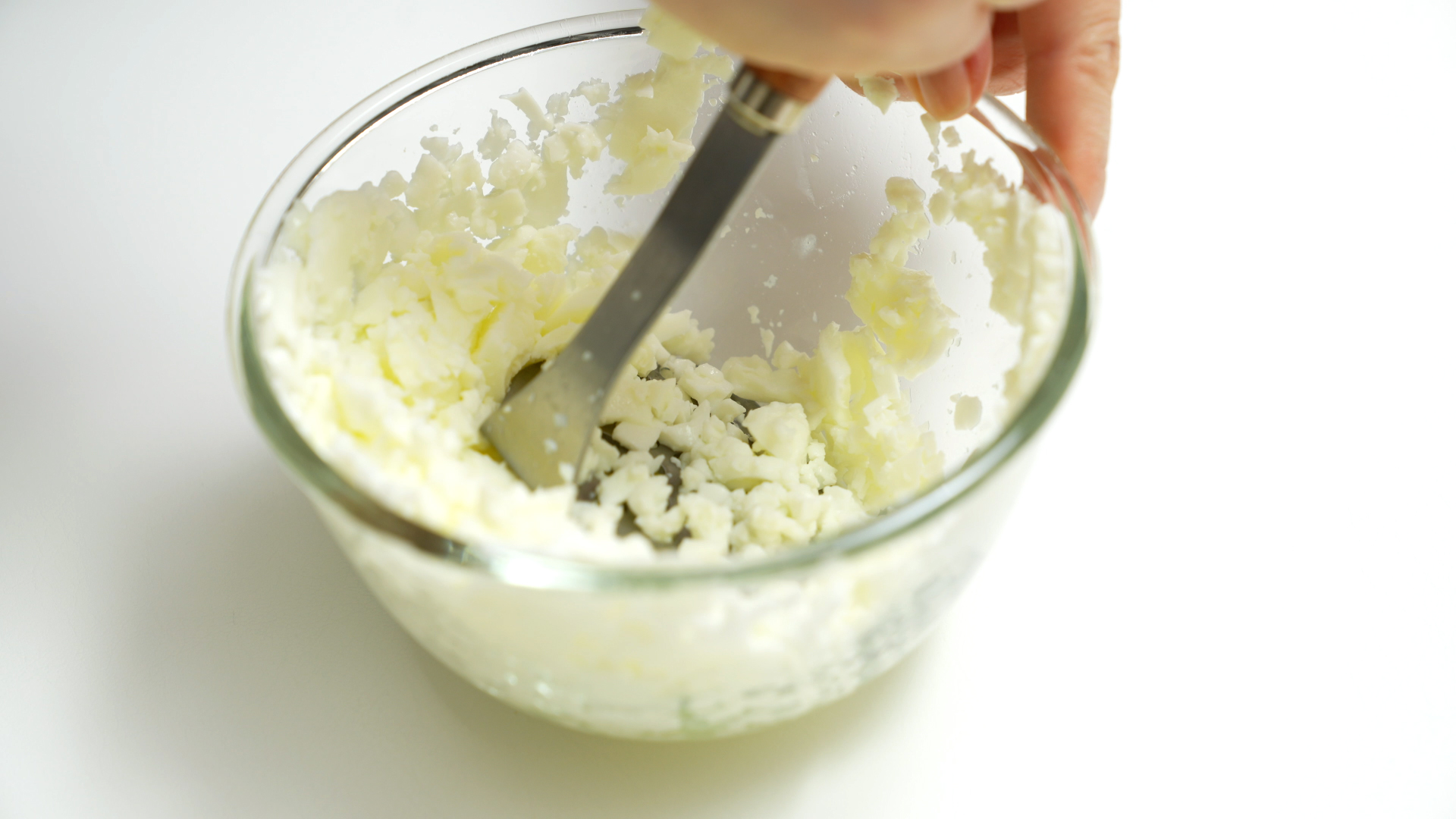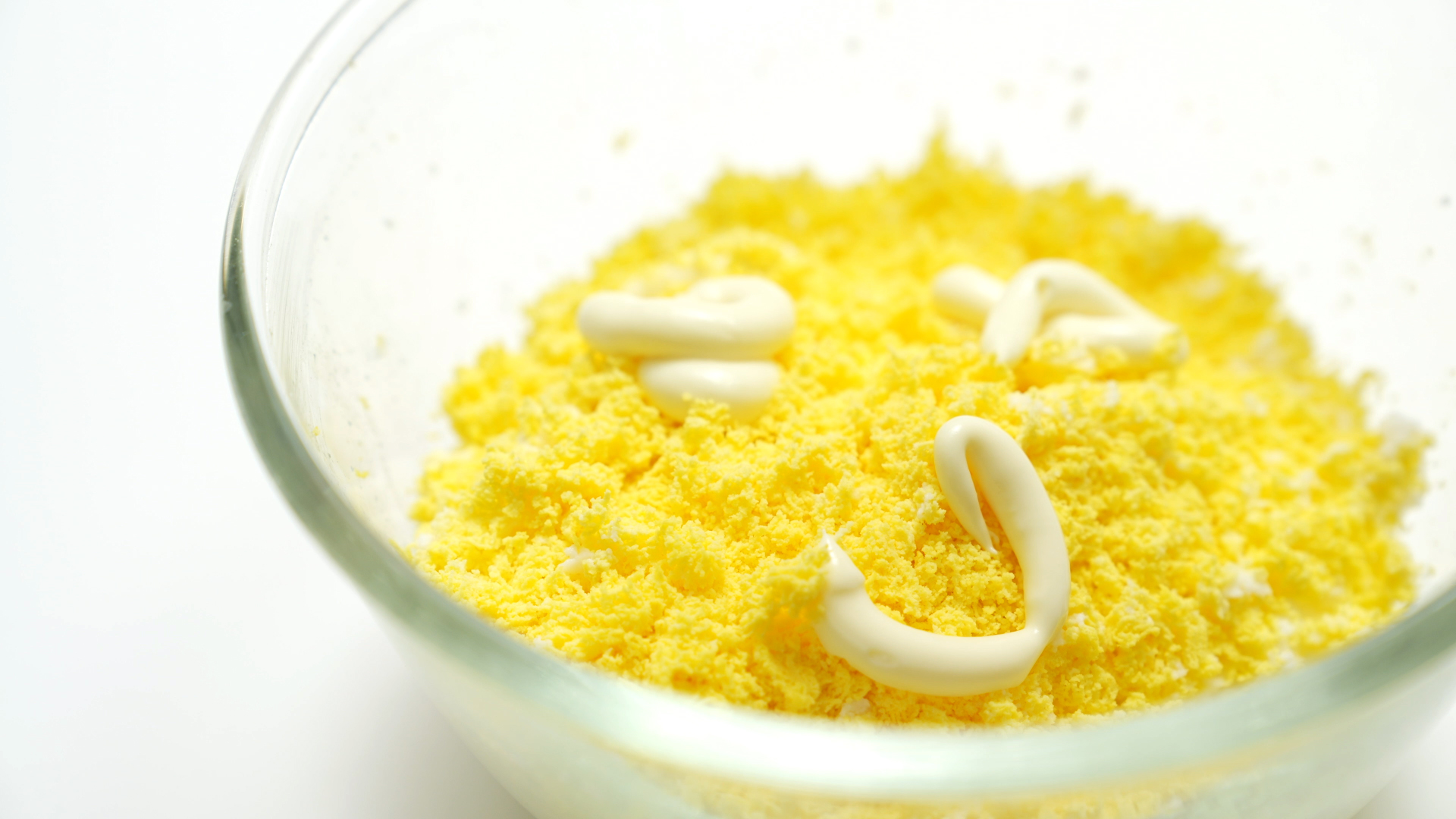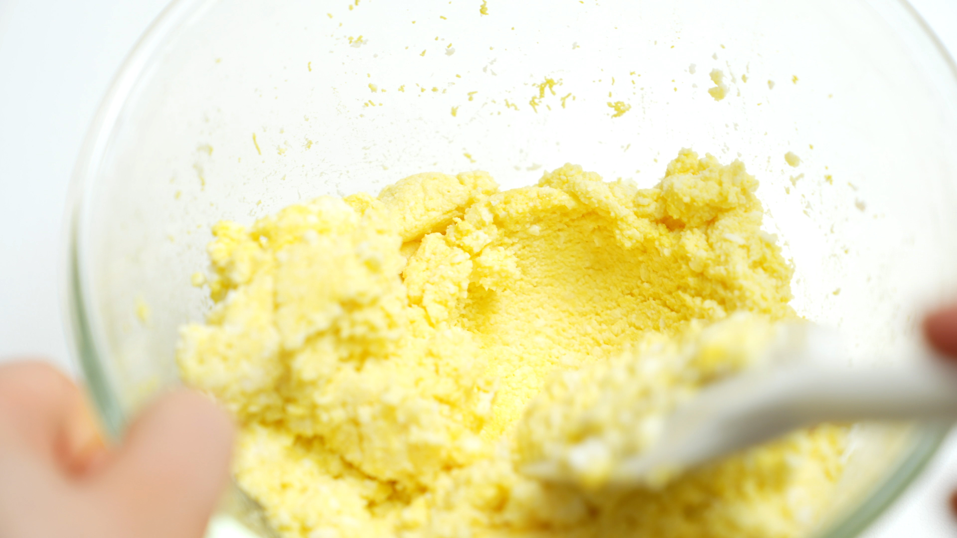 노른자는 포크로도 잘 으깨집니다.