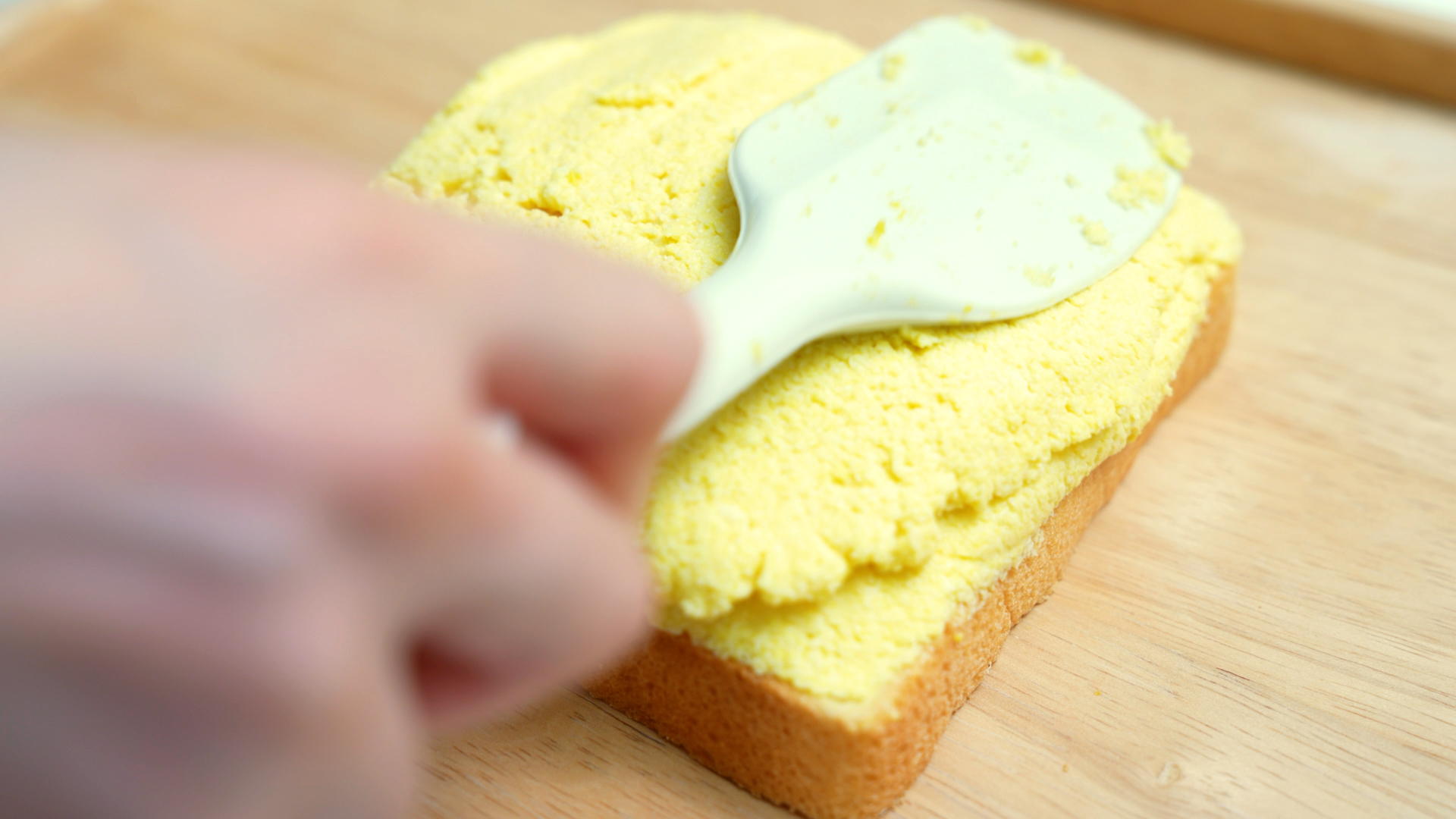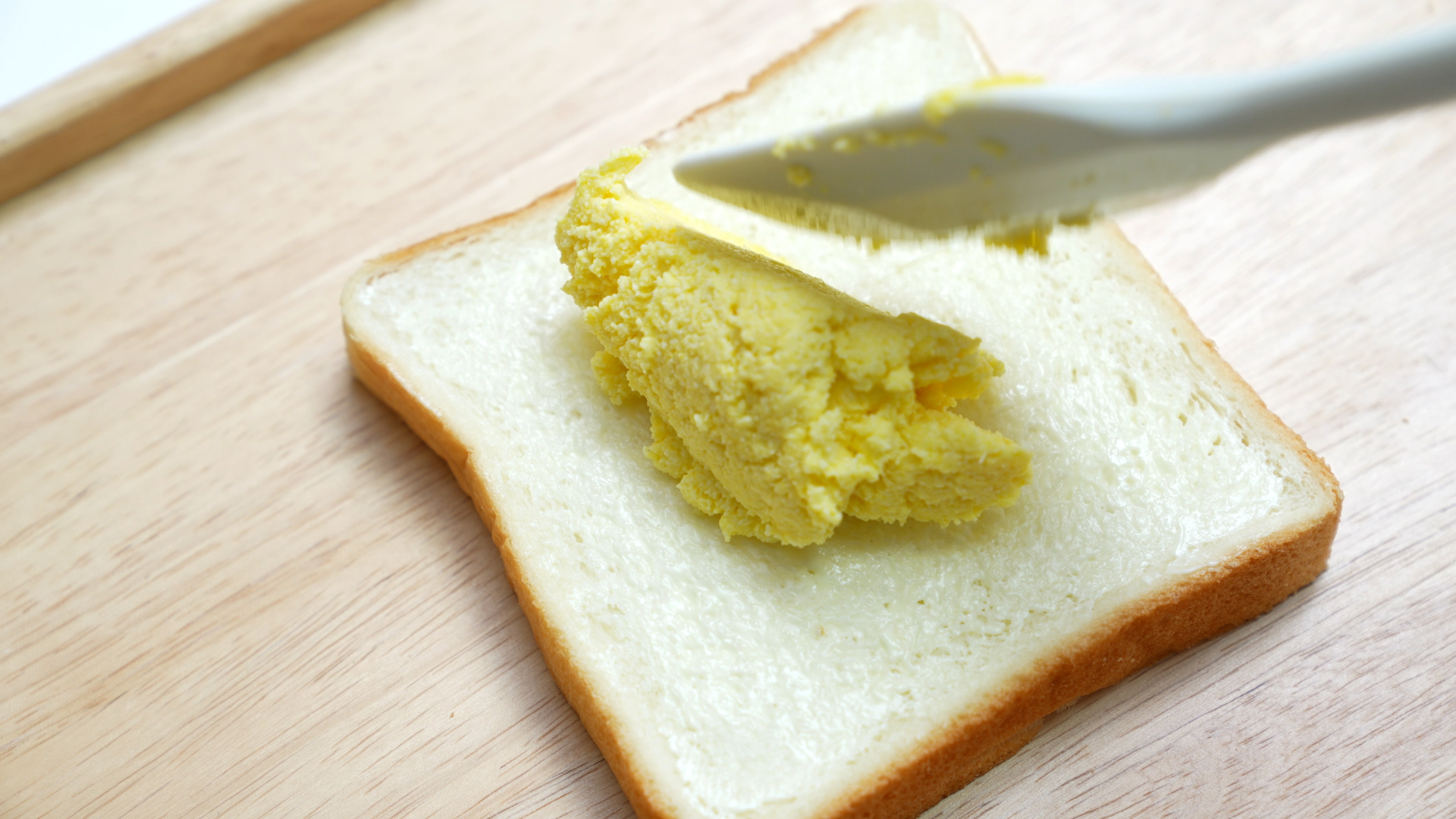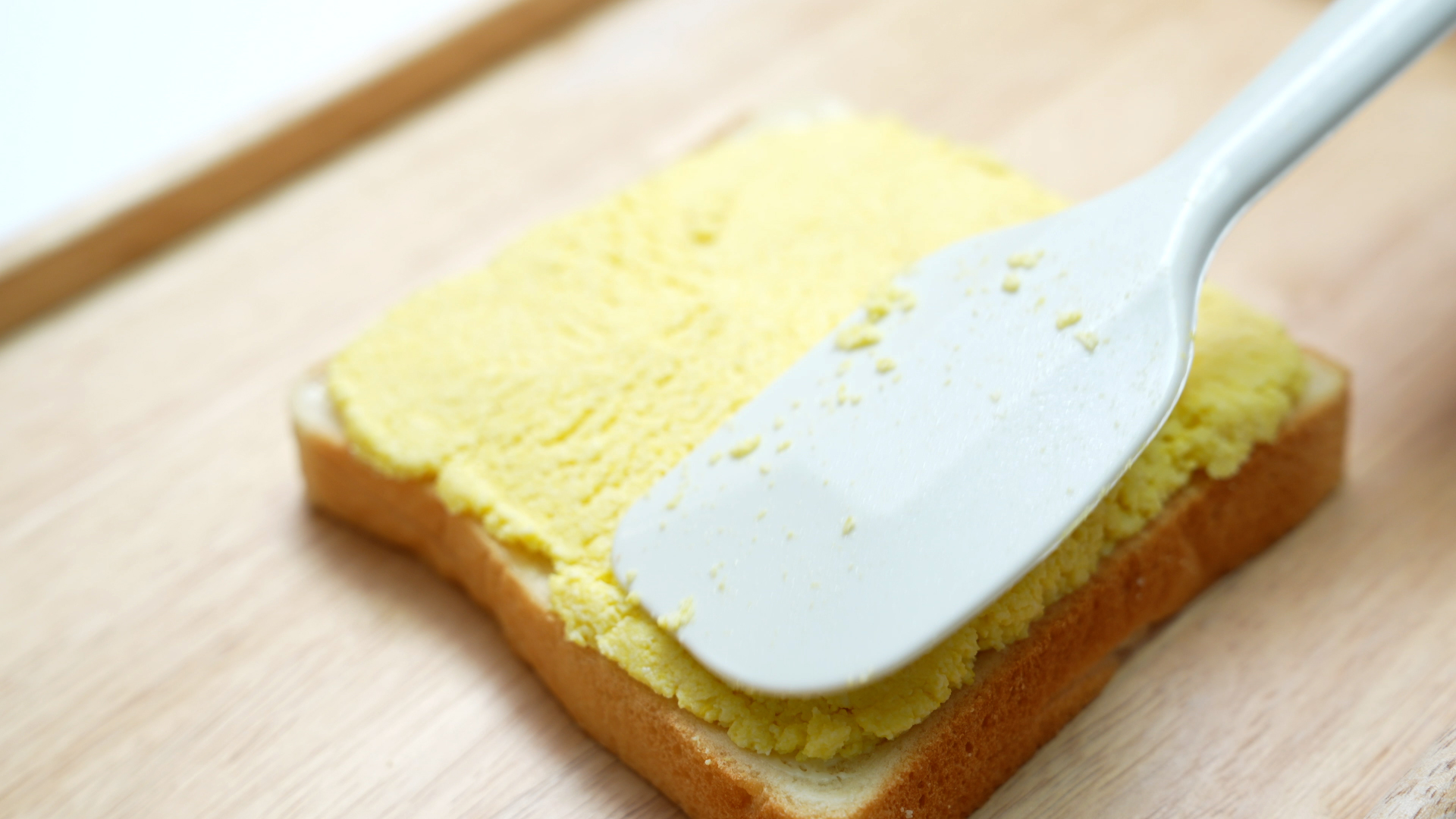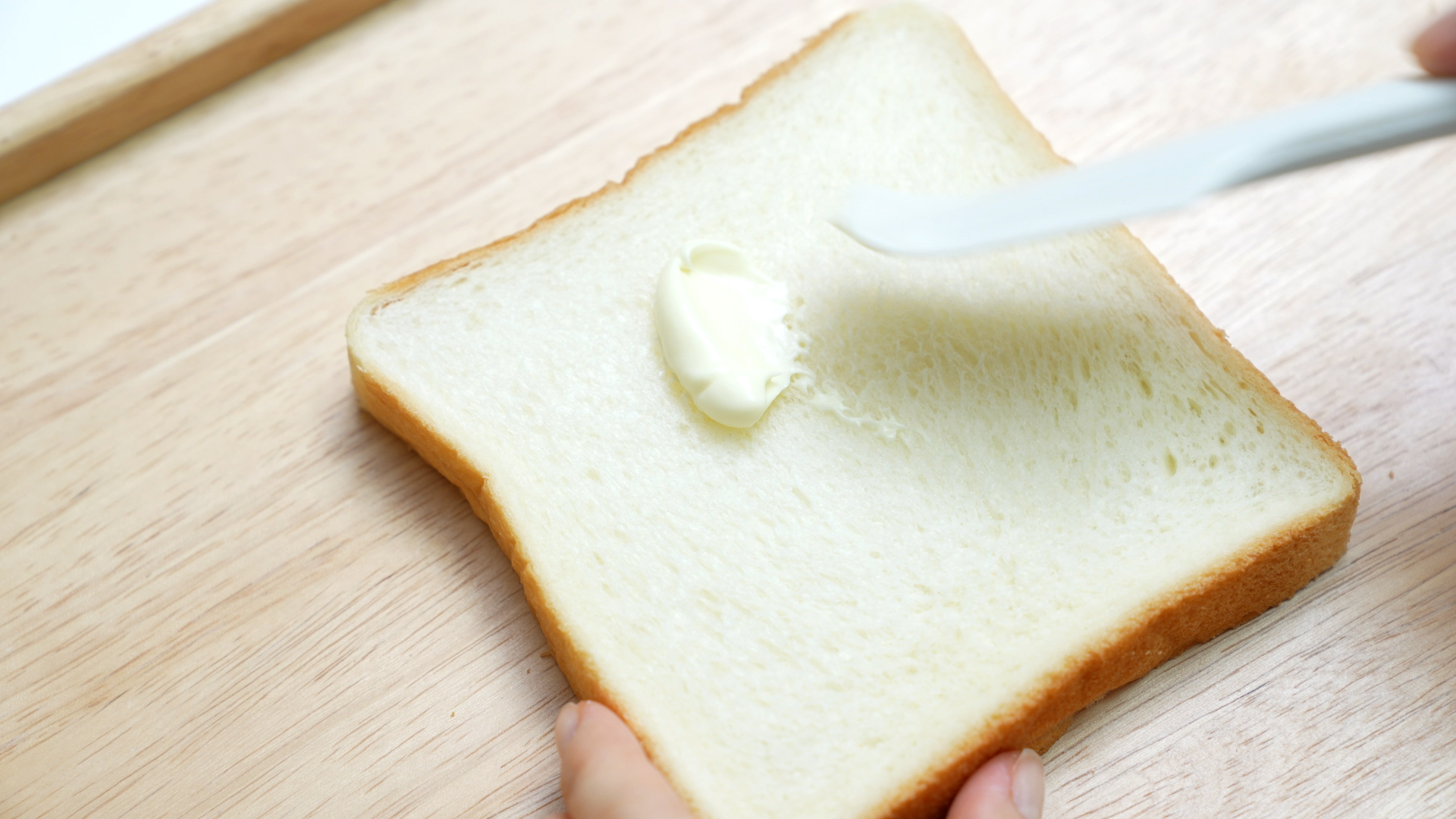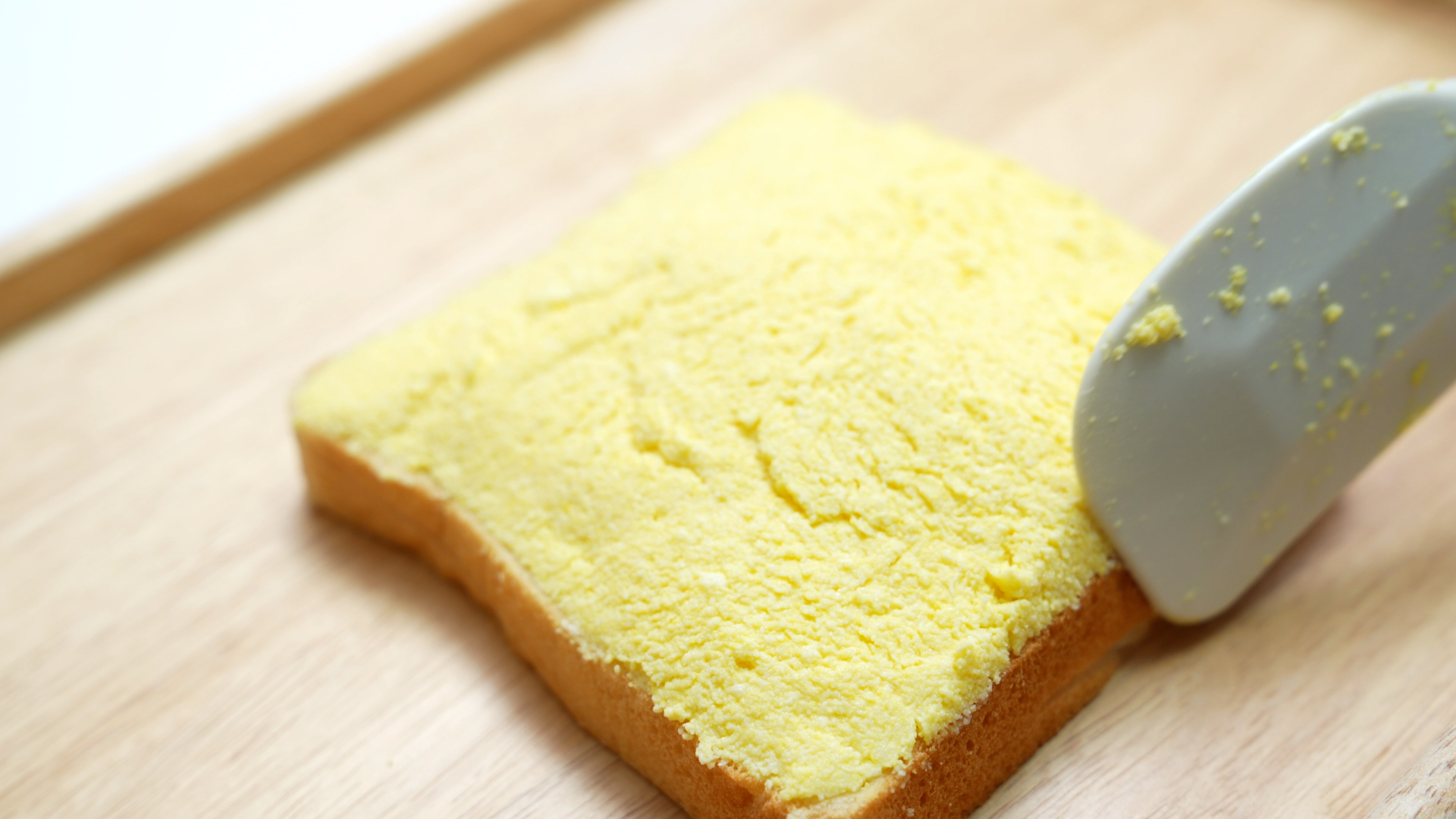 접착제 역할로 식빵 한쪽면에 마요네즈를 얇게 발라주세요.