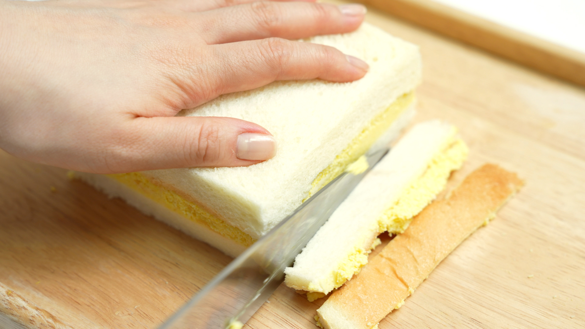 식빵테두리를 잘라 예쁘게 만들어주세요.