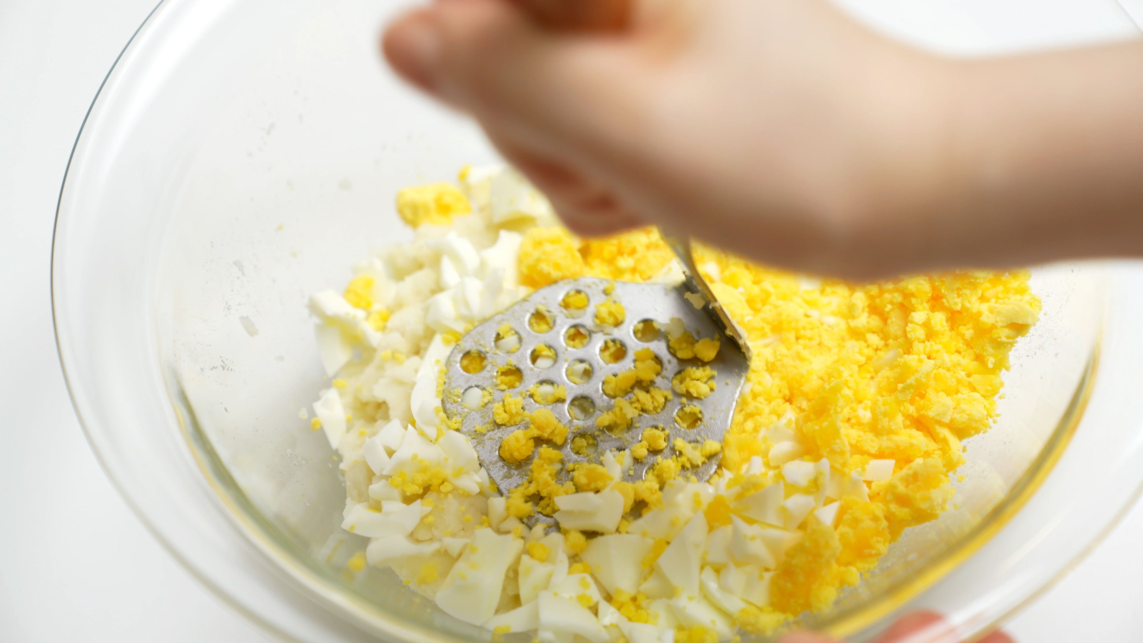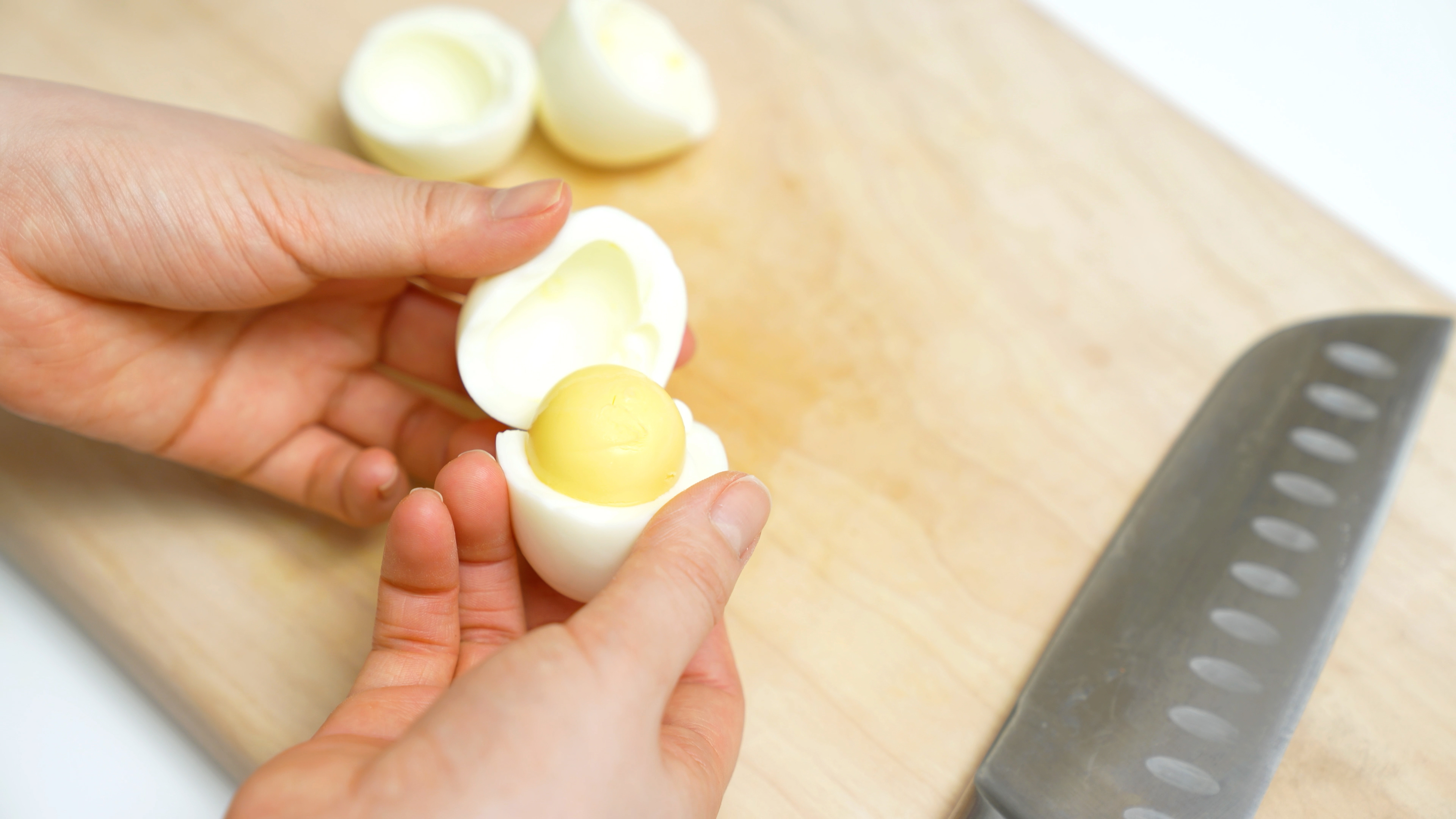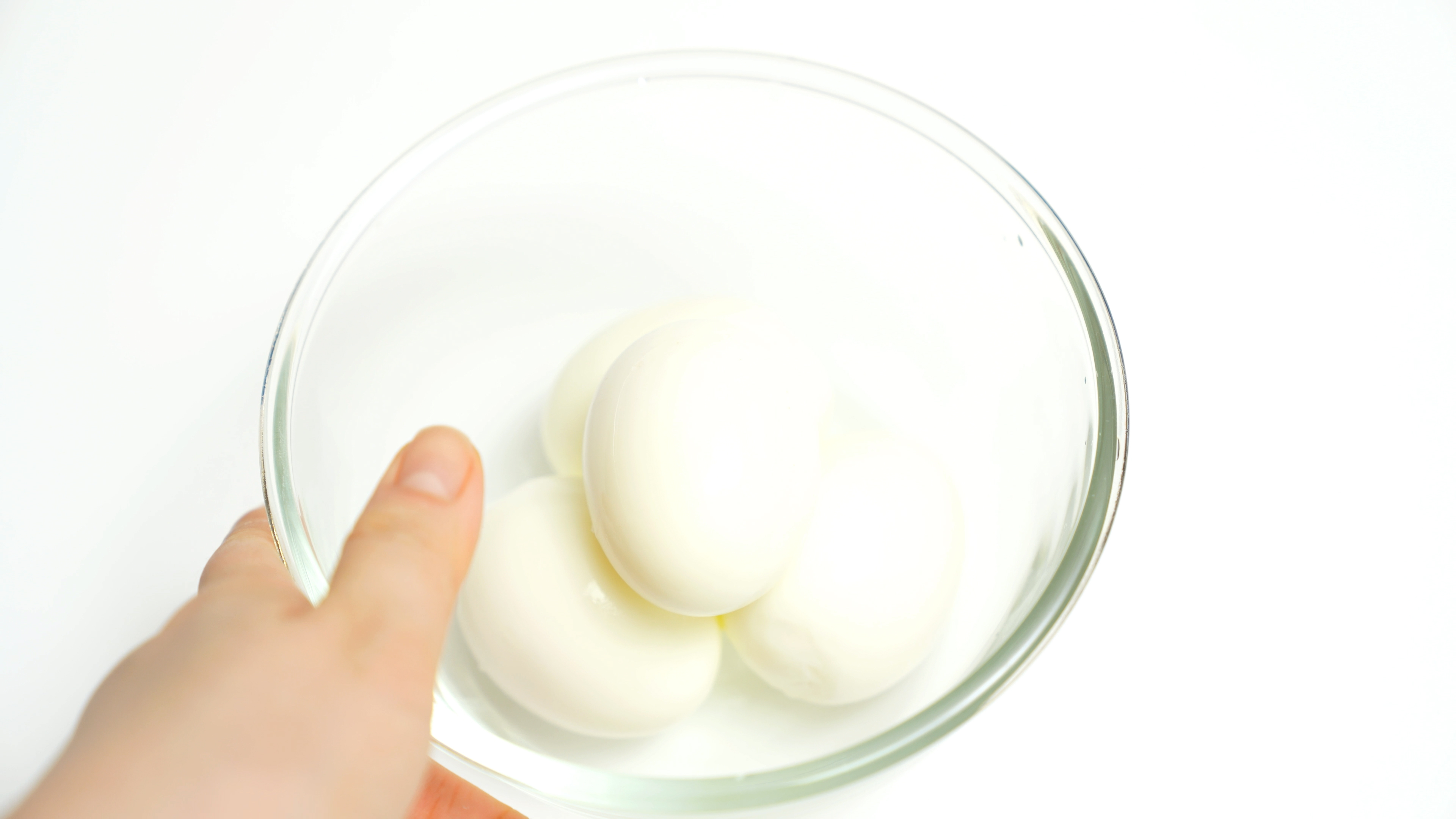 삶은 계란은 바로 찬물에 담가 식혀주세요.