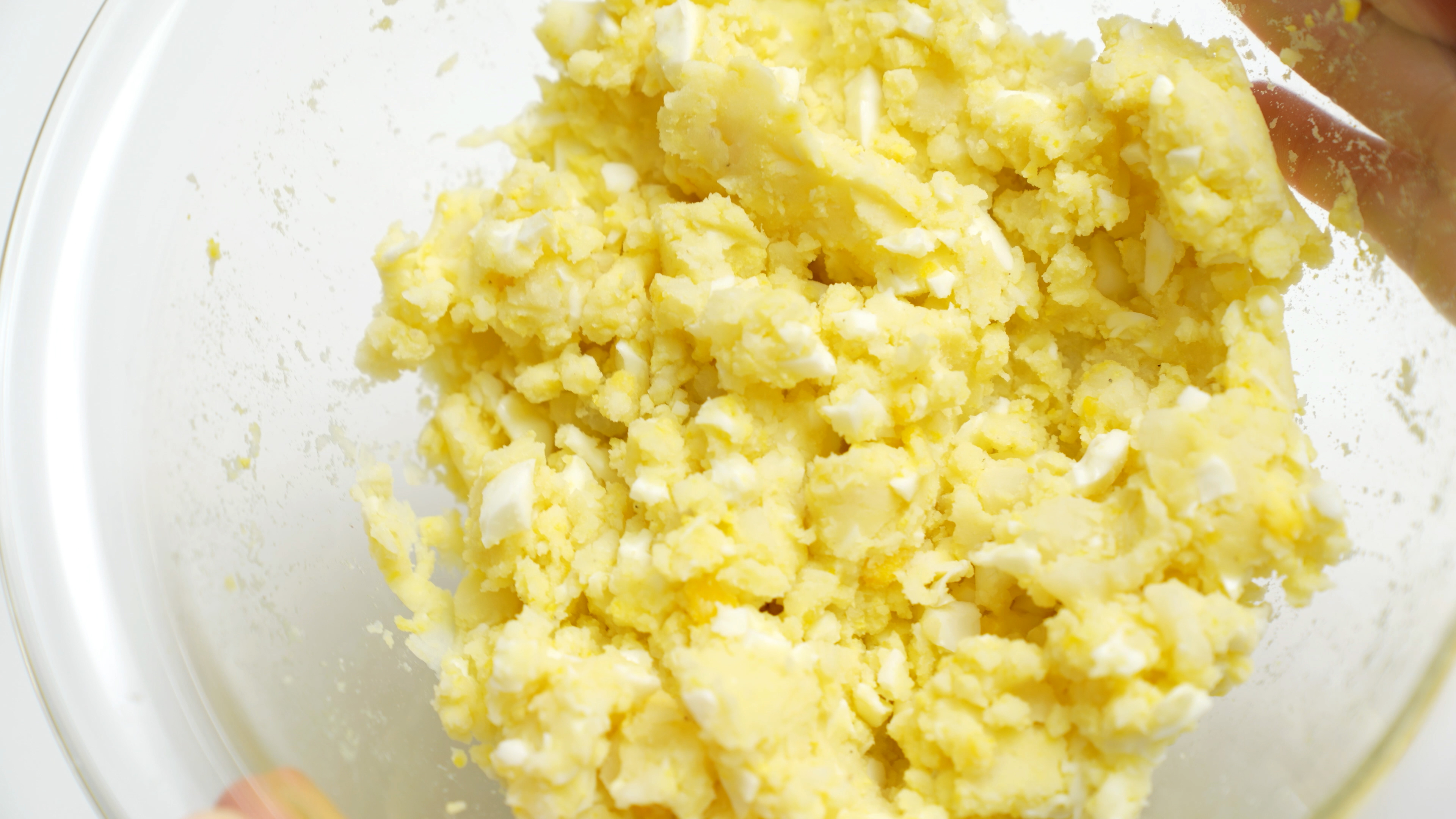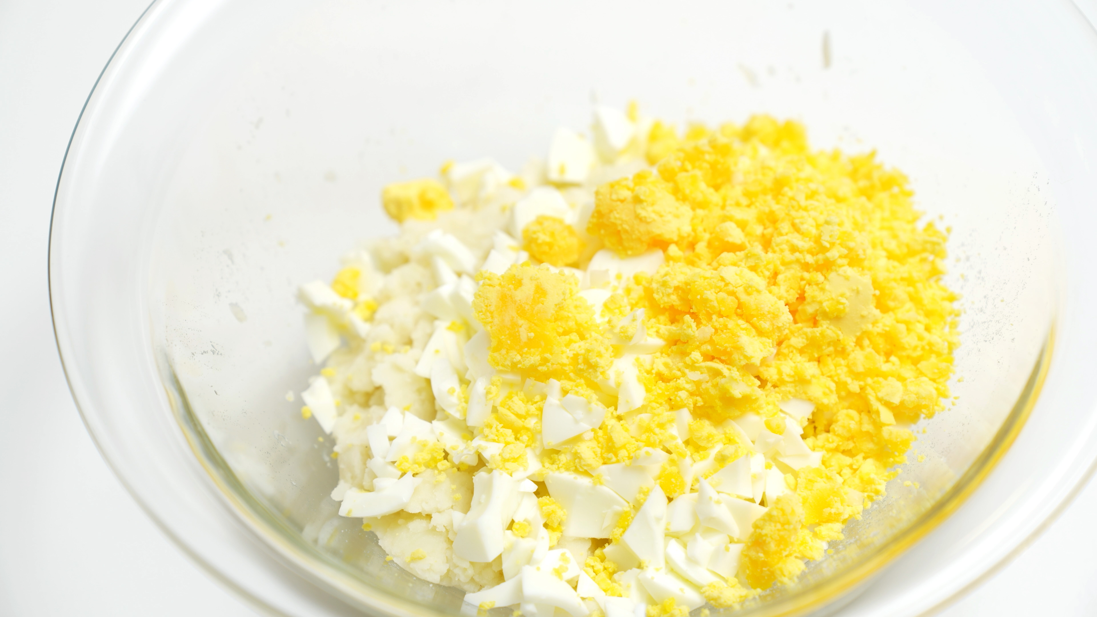 계란흰자와 노른자를 분리한 뒤 흰자는 큼직하게 잘라주고,