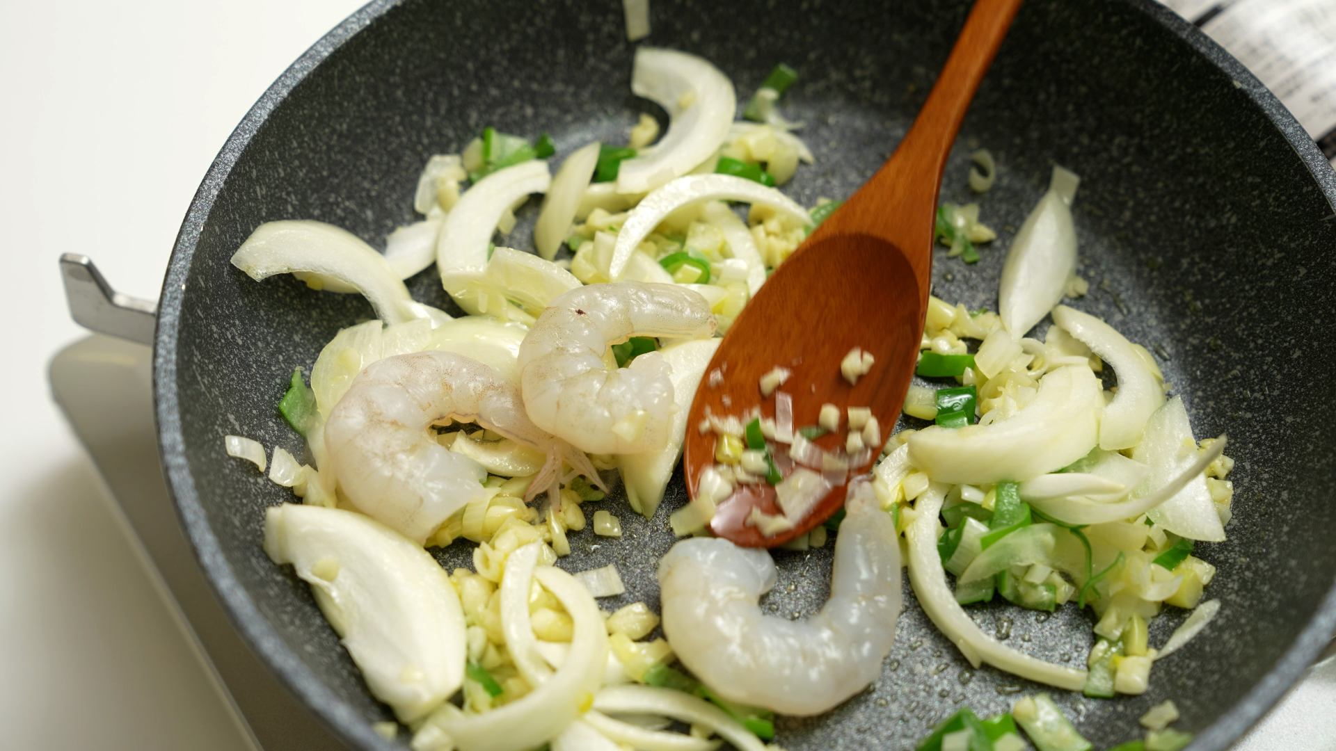 양파, 새우 3개,