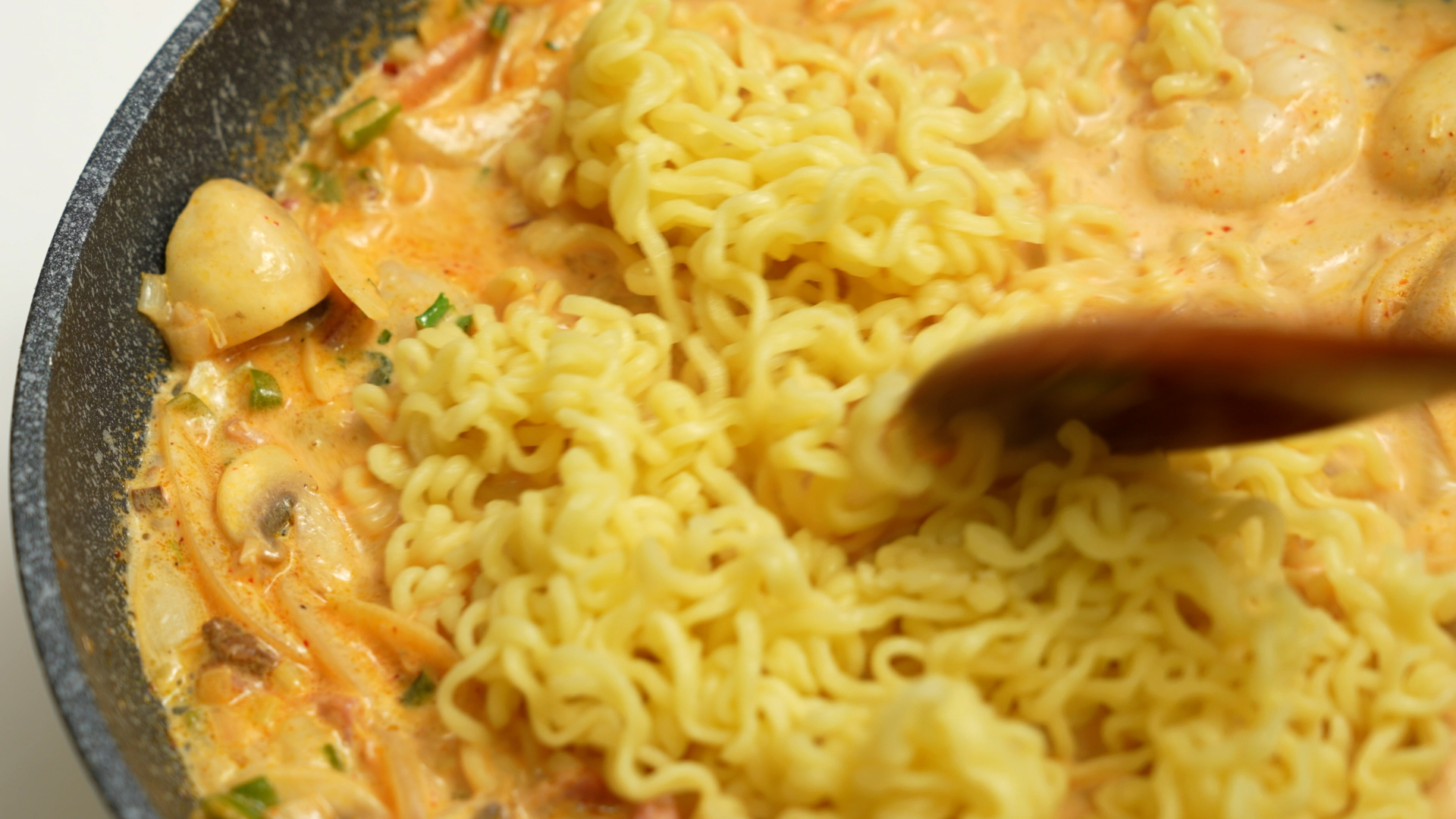 끓는 물에 면을 2분 정도 익혀주세요.