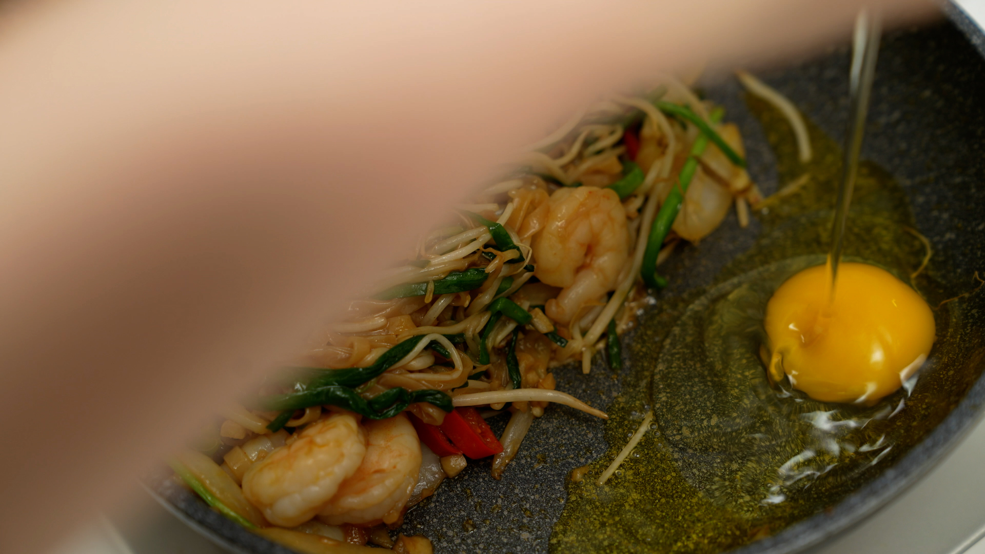 계란 1개를 넣어 스크램블 해준 뒤,