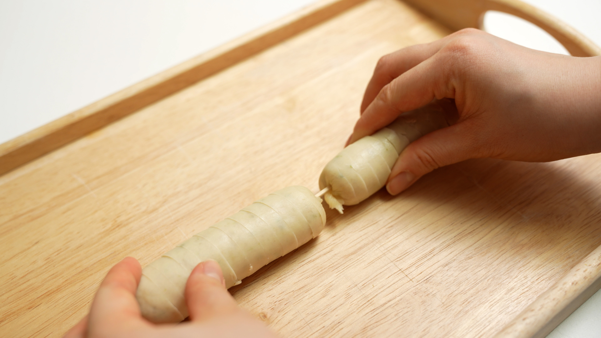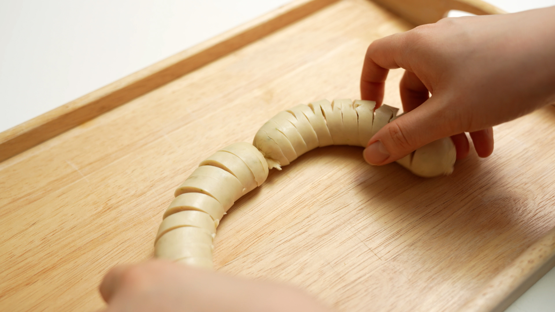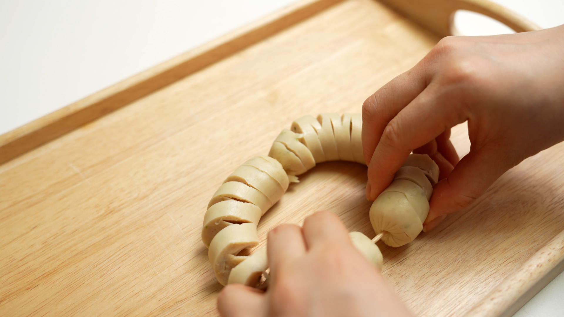 면이 풀어지면 빠르게 가운데 공간을 만들어 주세요