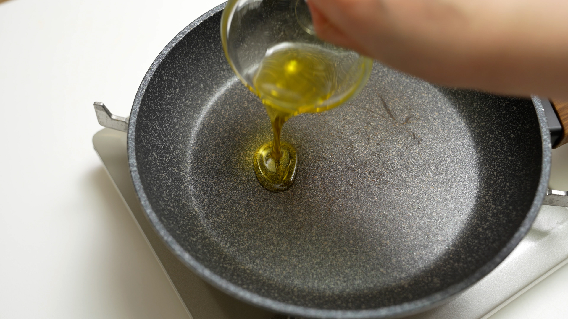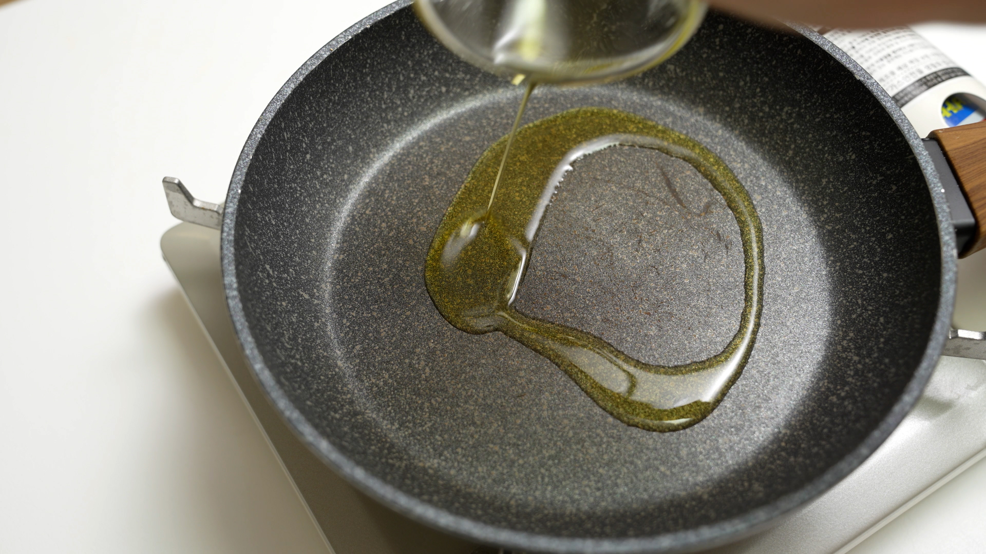 중불로 달군 팬에 올리브유