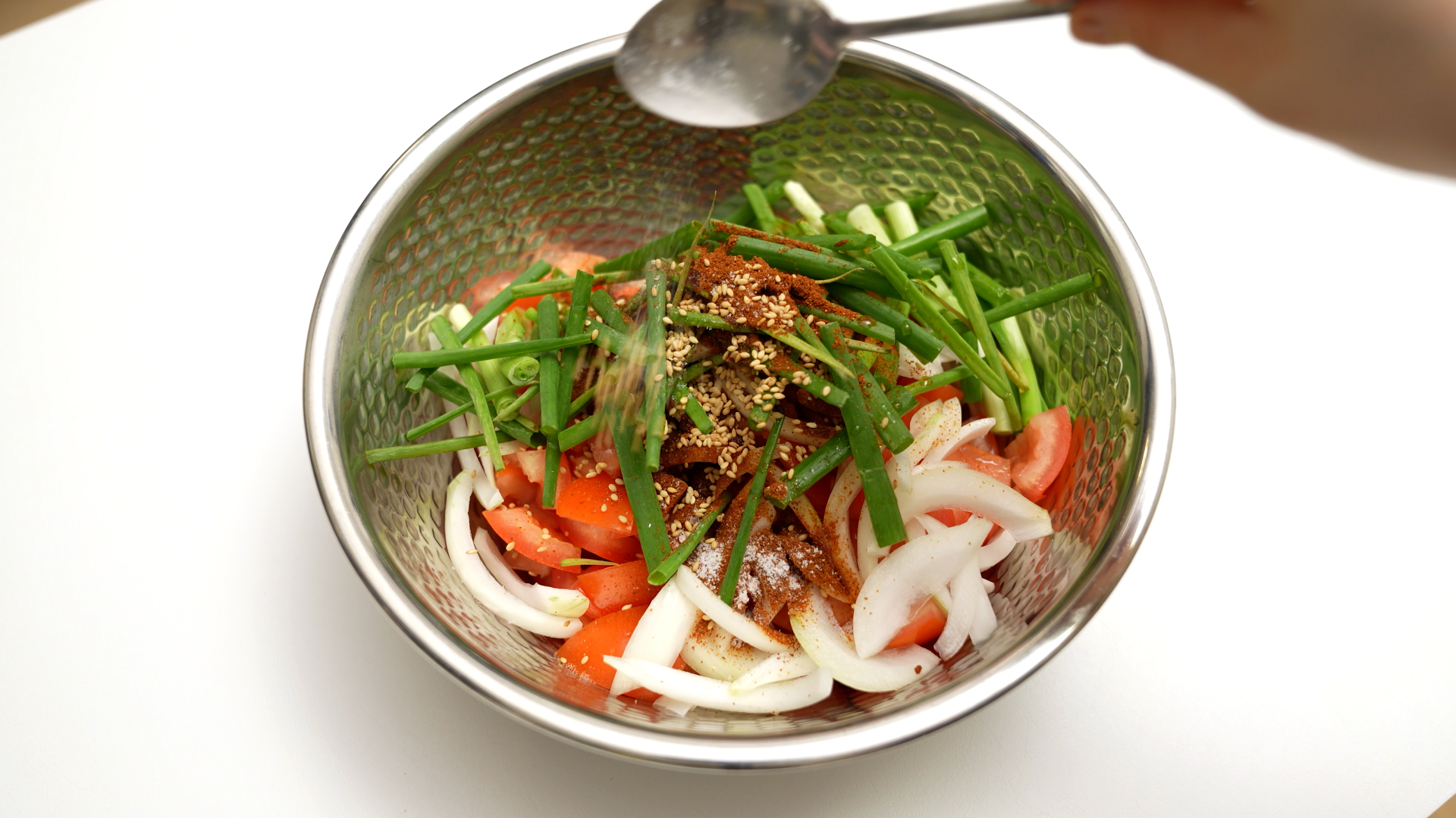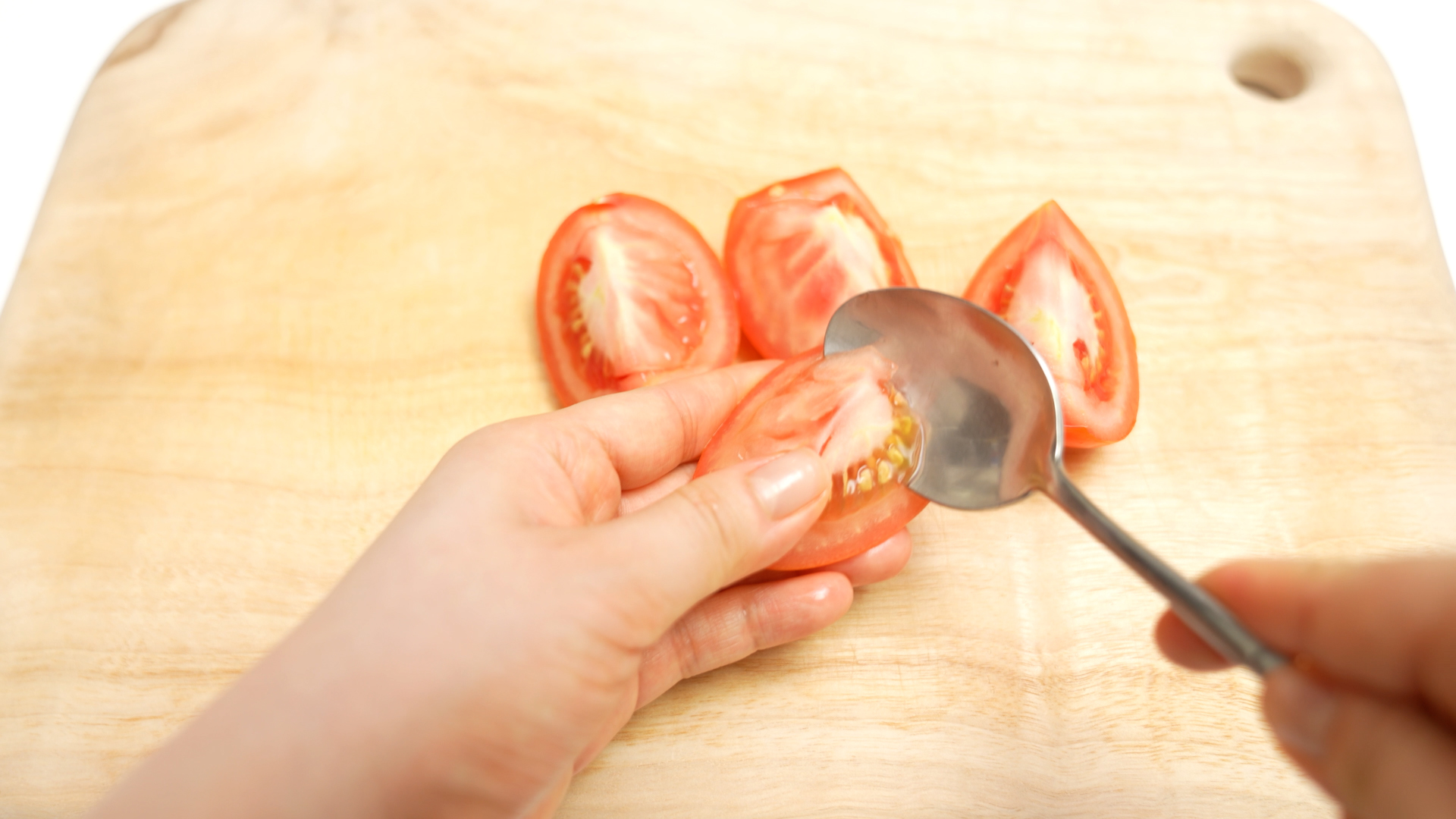 수저로 토마토씨를 파내고,