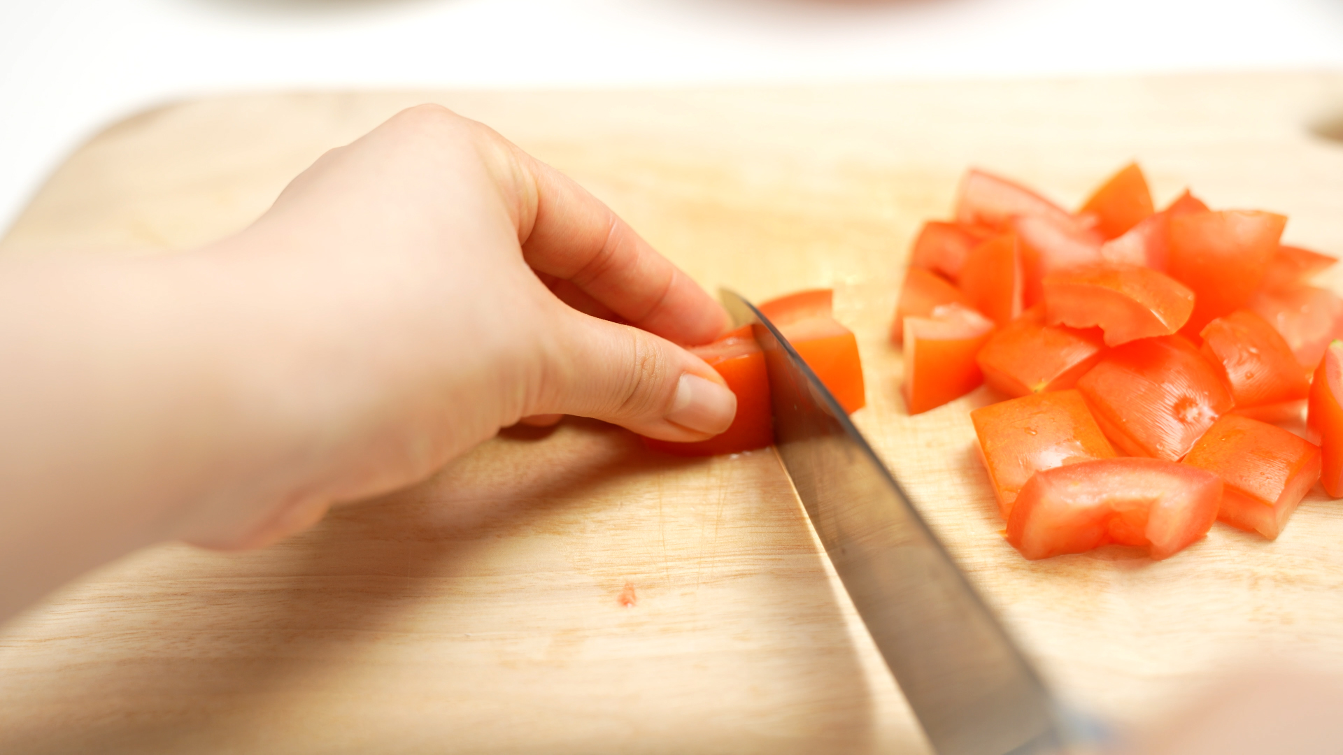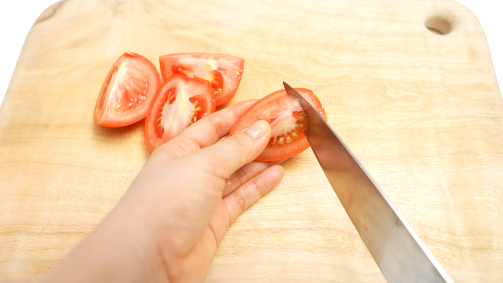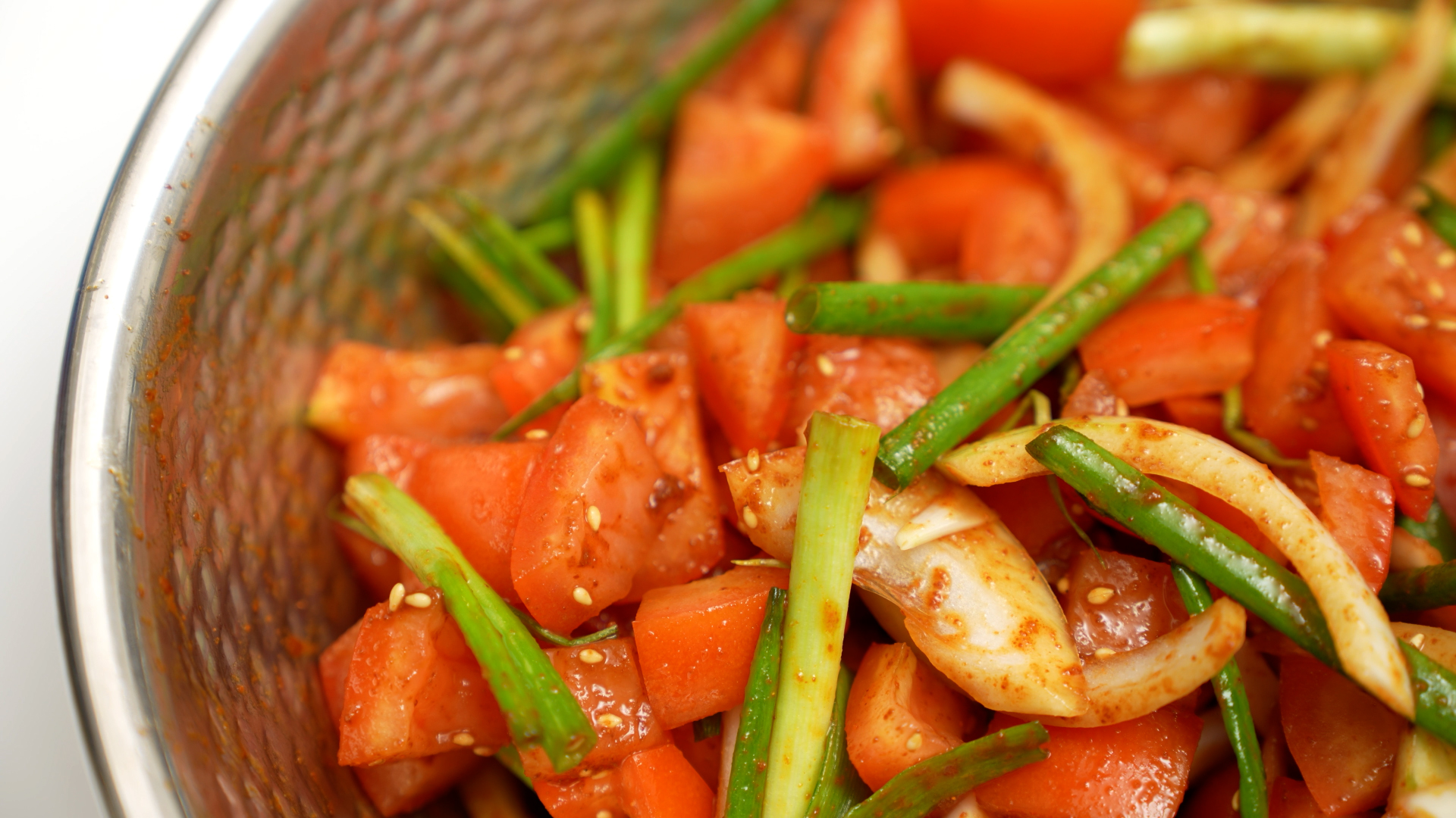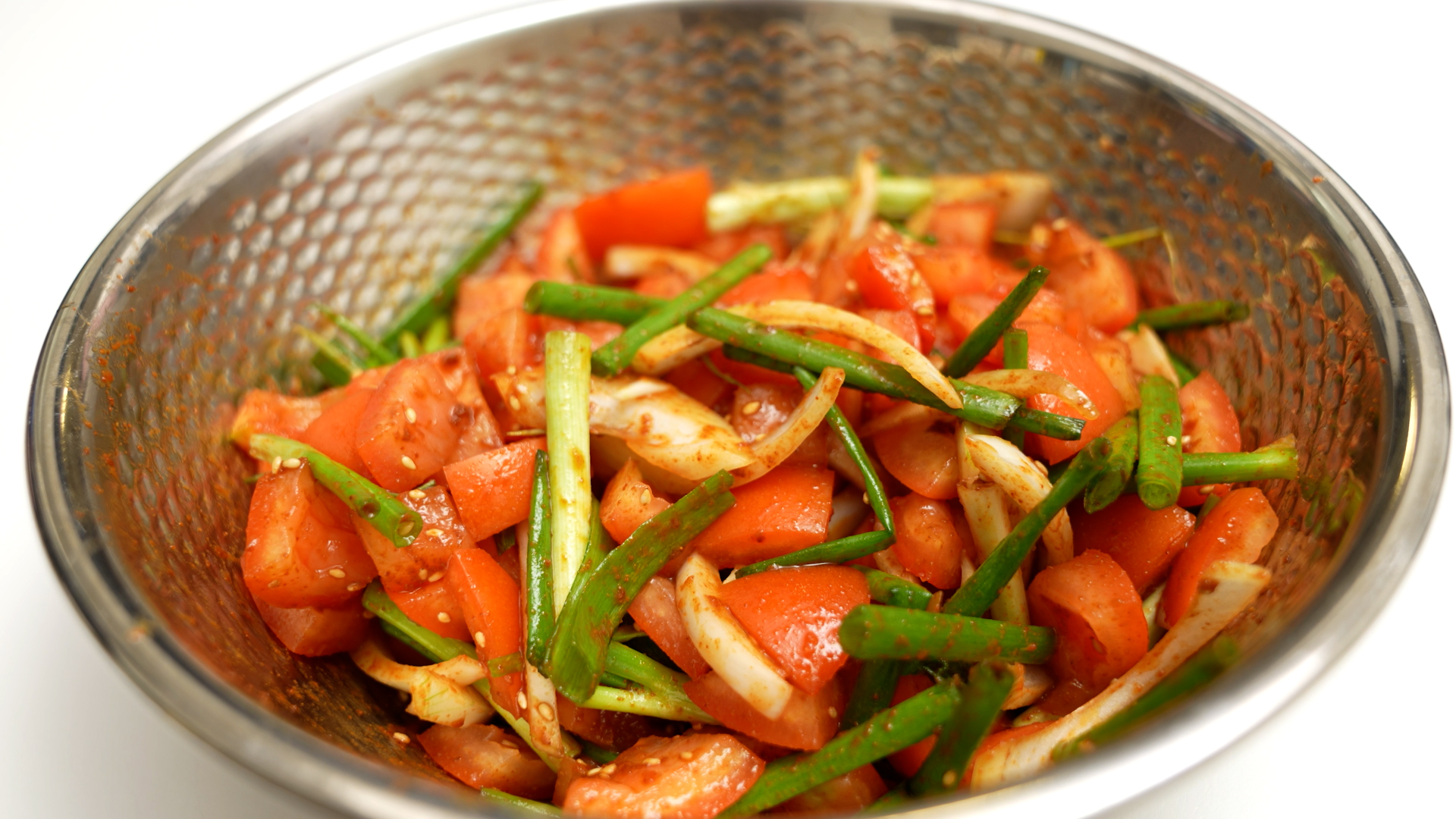 이럴 경우 작게 자르지 않고, 토마토 한 개를 4 등분한 상태로 양념과 버무려 주세요*