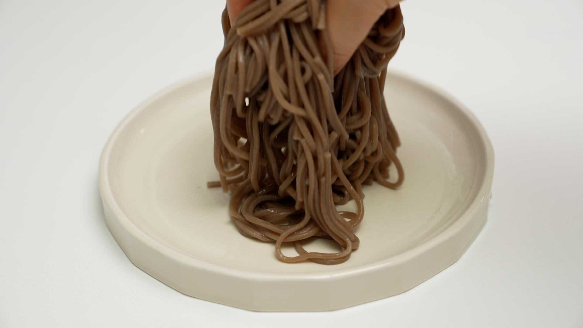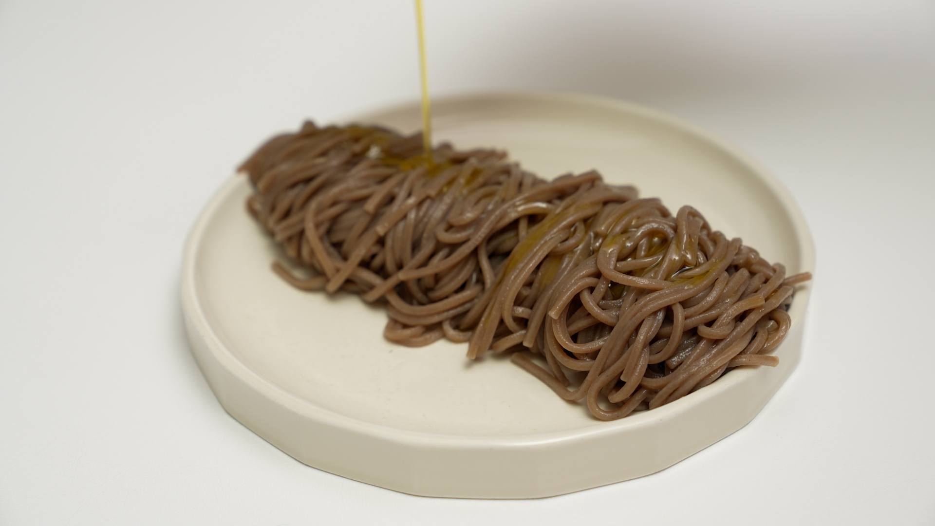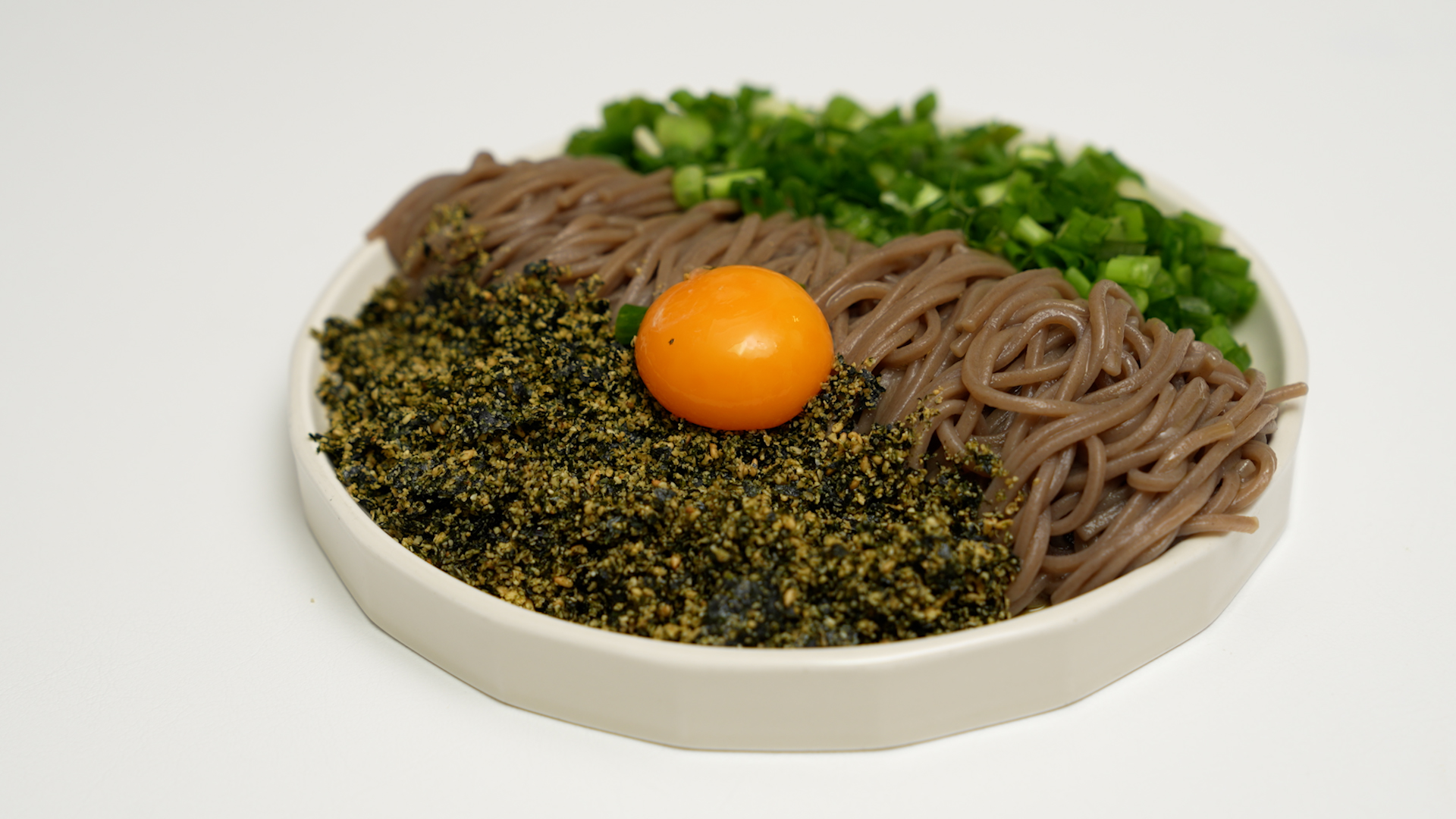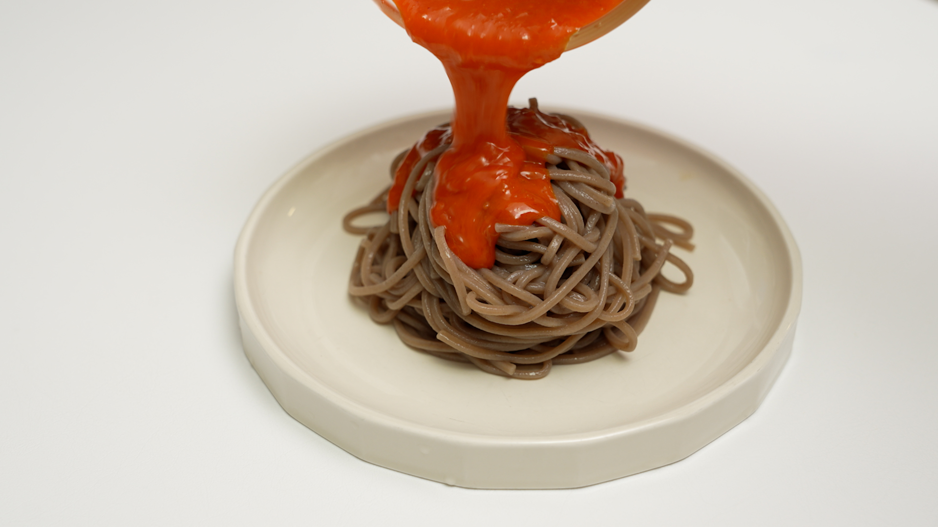 물기를 쫙 뺀 메밀면을 접시에 옮기고