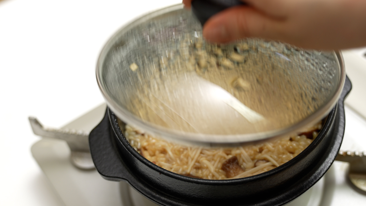10분 동안 뜸 들인 후 뚜껑을 열고,