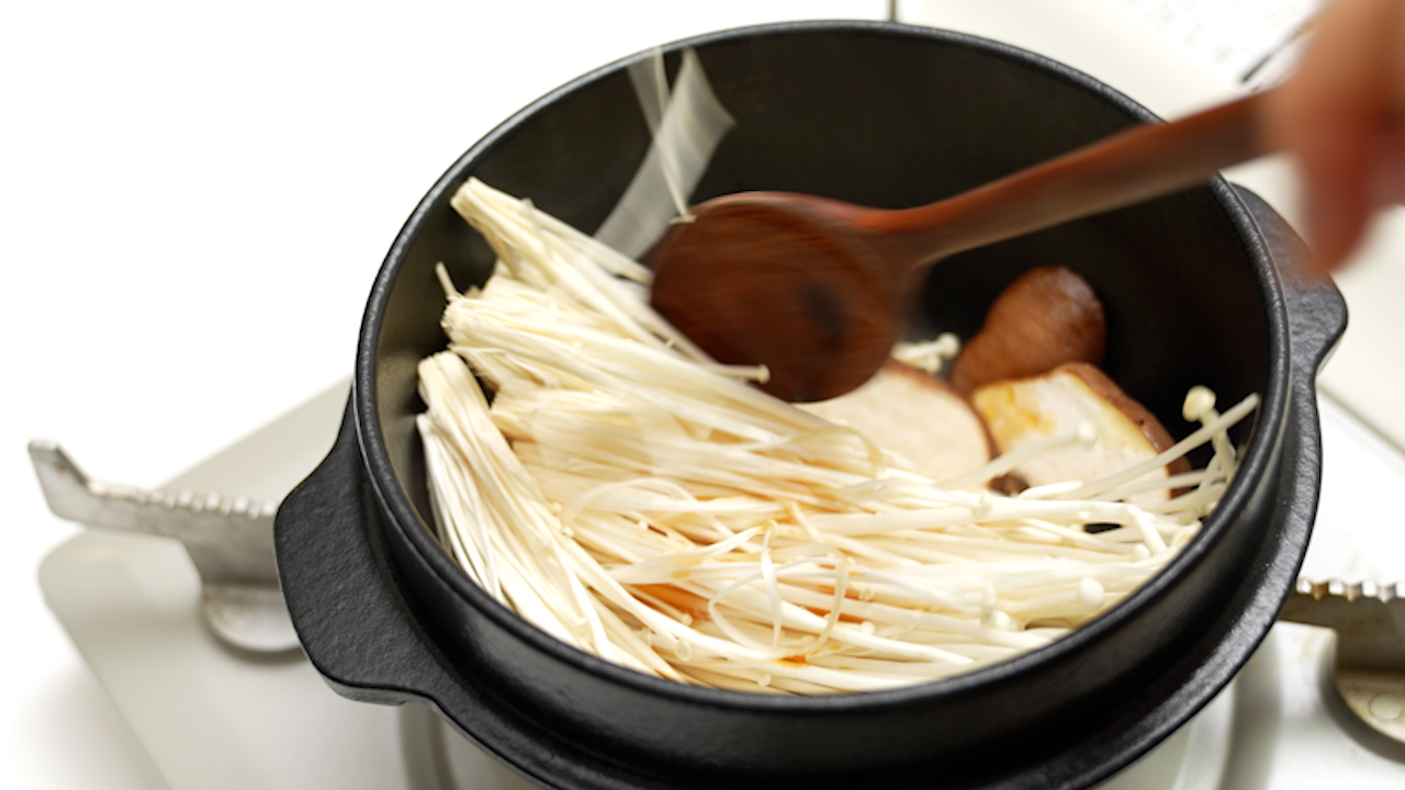 표고버섯, 팽이버섯을 순서대로 넣어 볶아주세요.