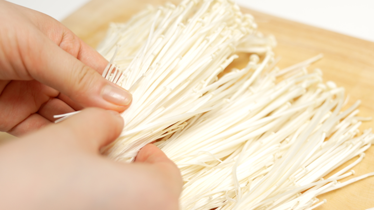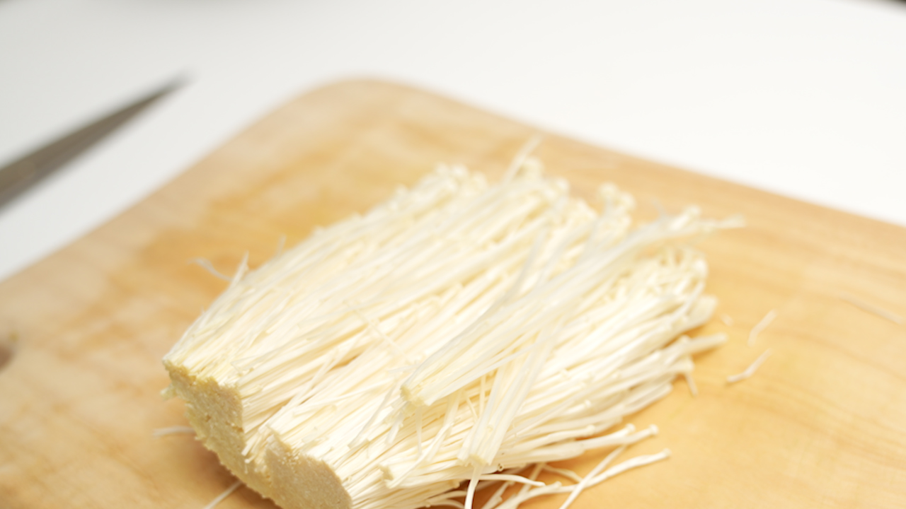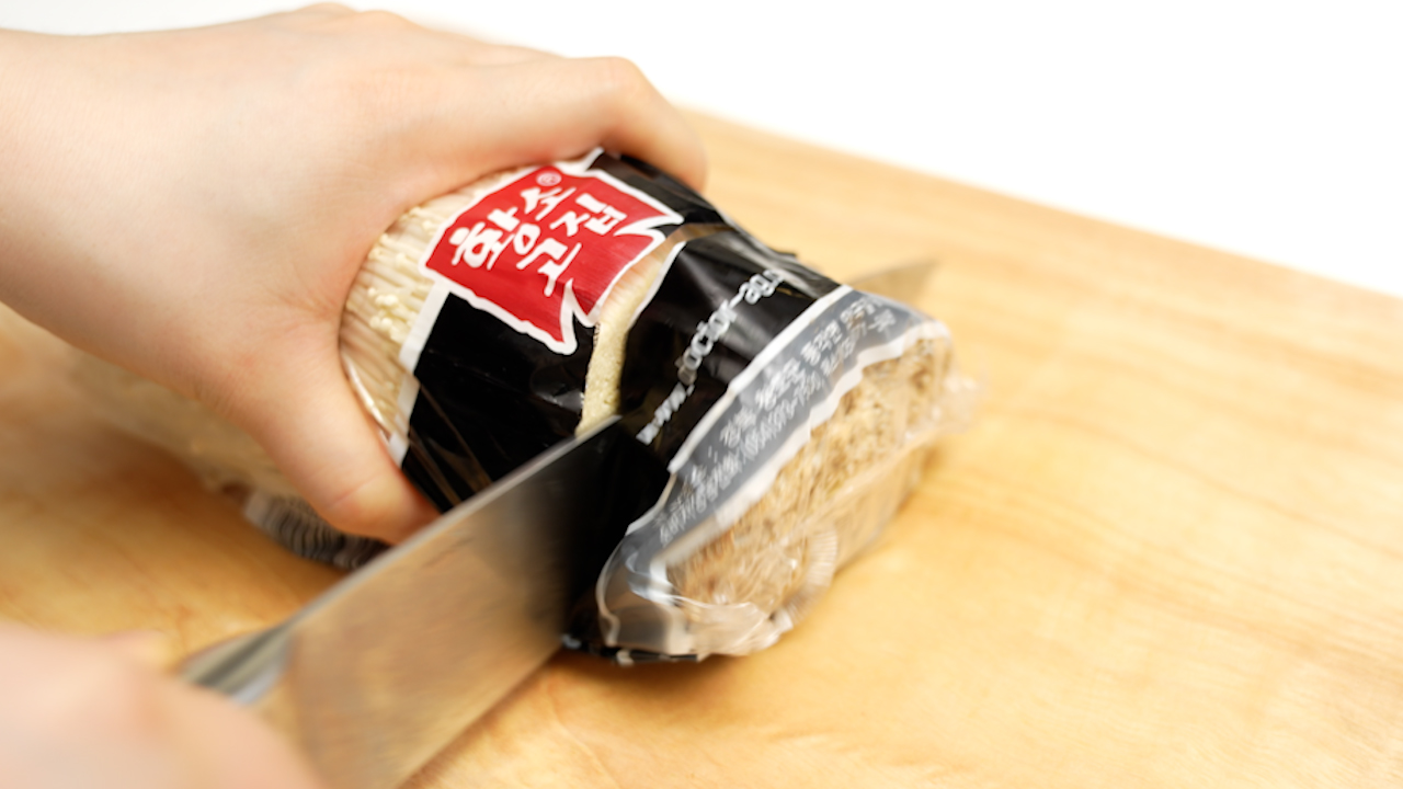 팽이버섯은 비닐채 밑동을 자르고, 꺼내면 깔끔하고 편합니다.