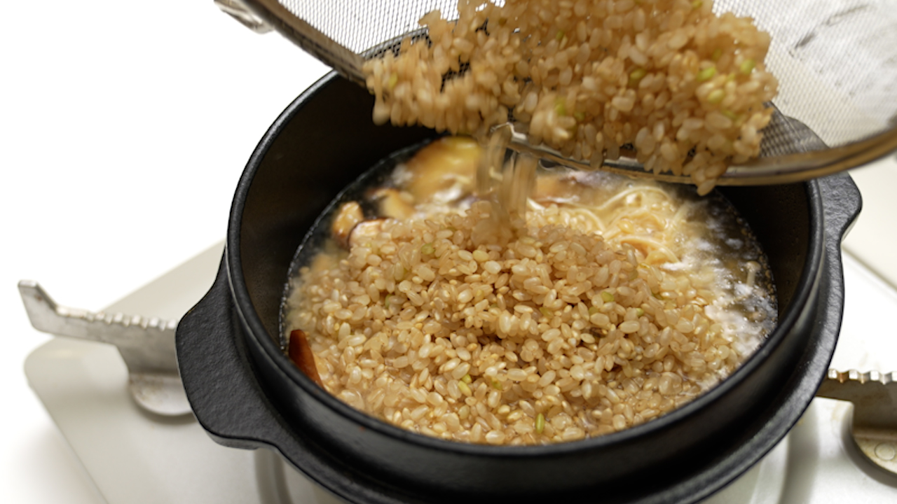 물 200ml, 불린 현미를 넣어 잘 섞어줍니다.
