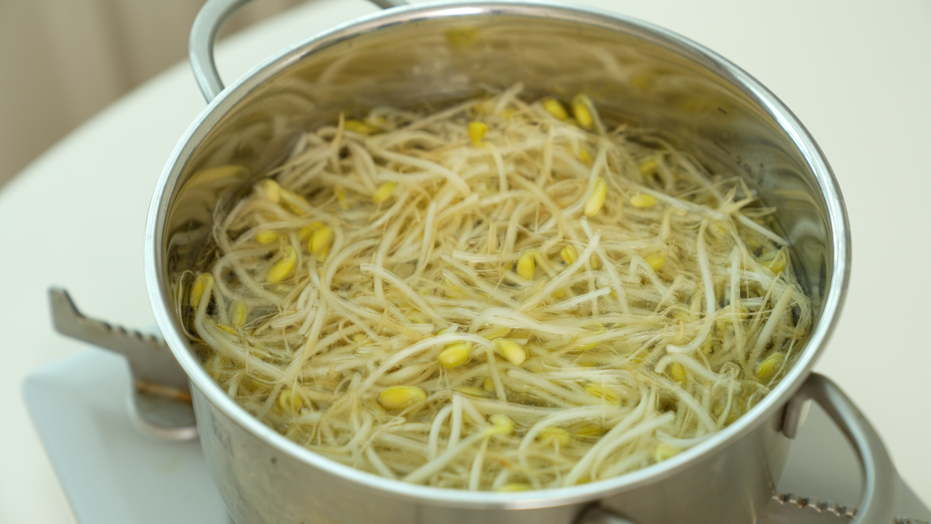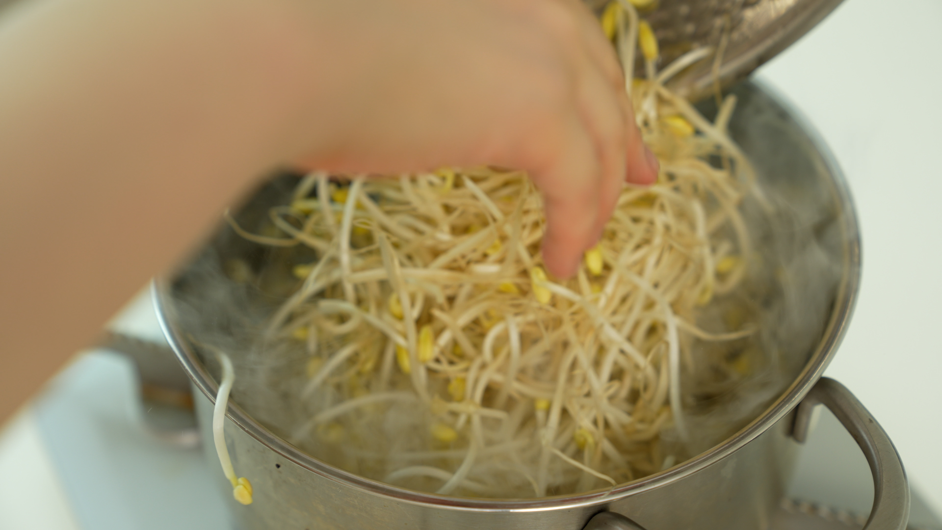 3~4분 데친 뒤 콩나물을 꺼내주세요.