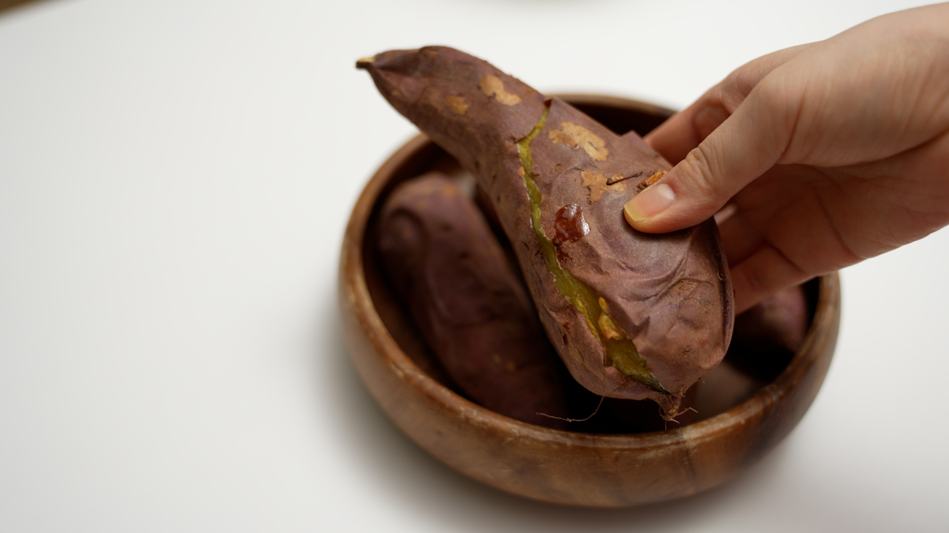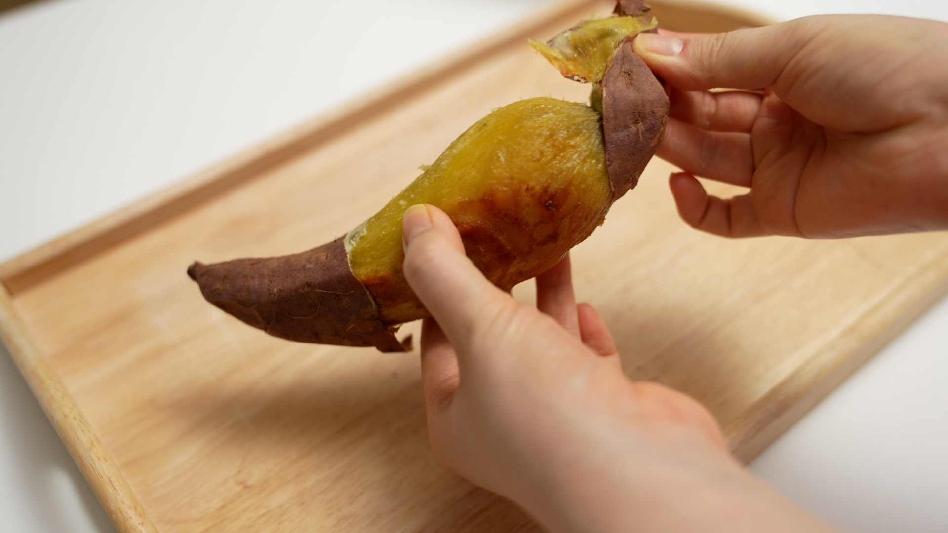 적당히 두꺼운 고구마를 골라 껍질을 까주세요.