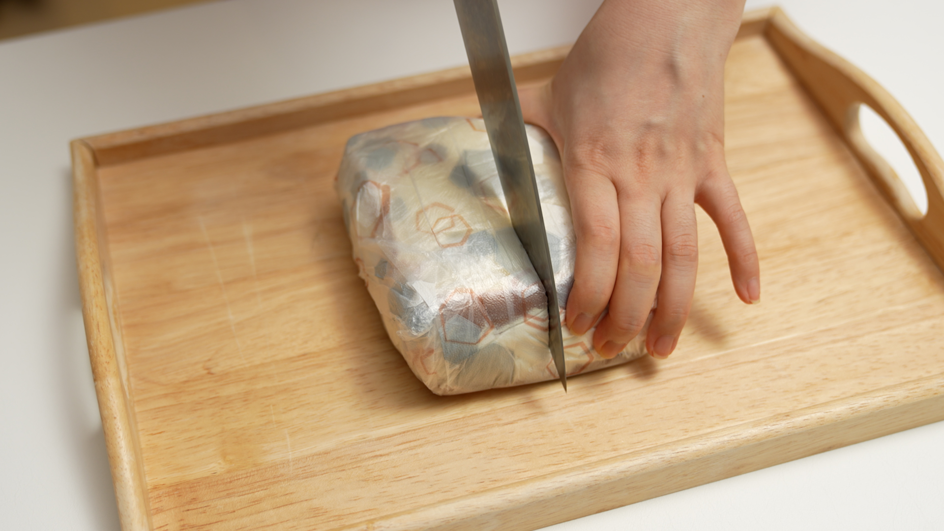 매직랩을 이용해 고구마 샌드위치를 포장하고,