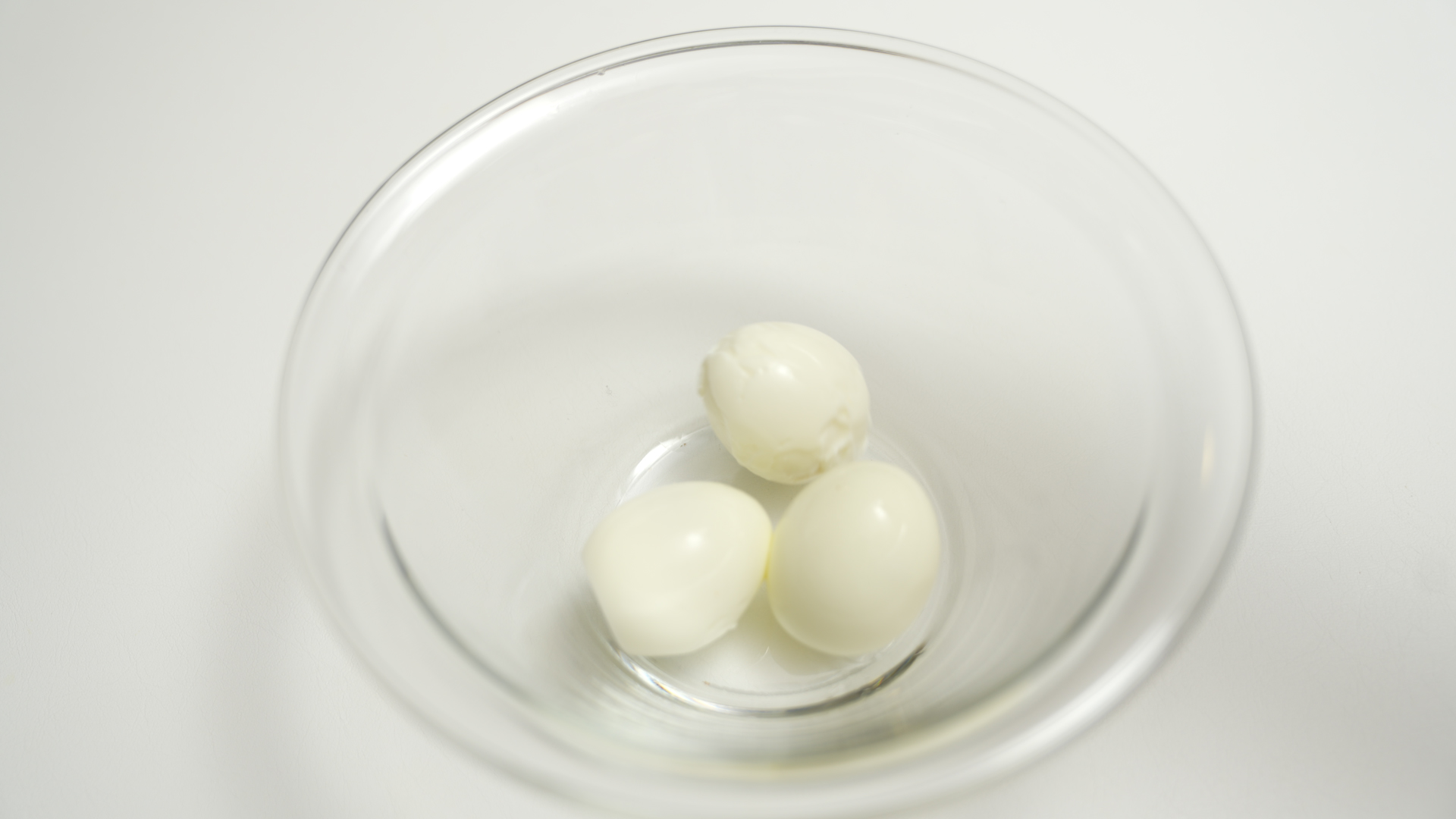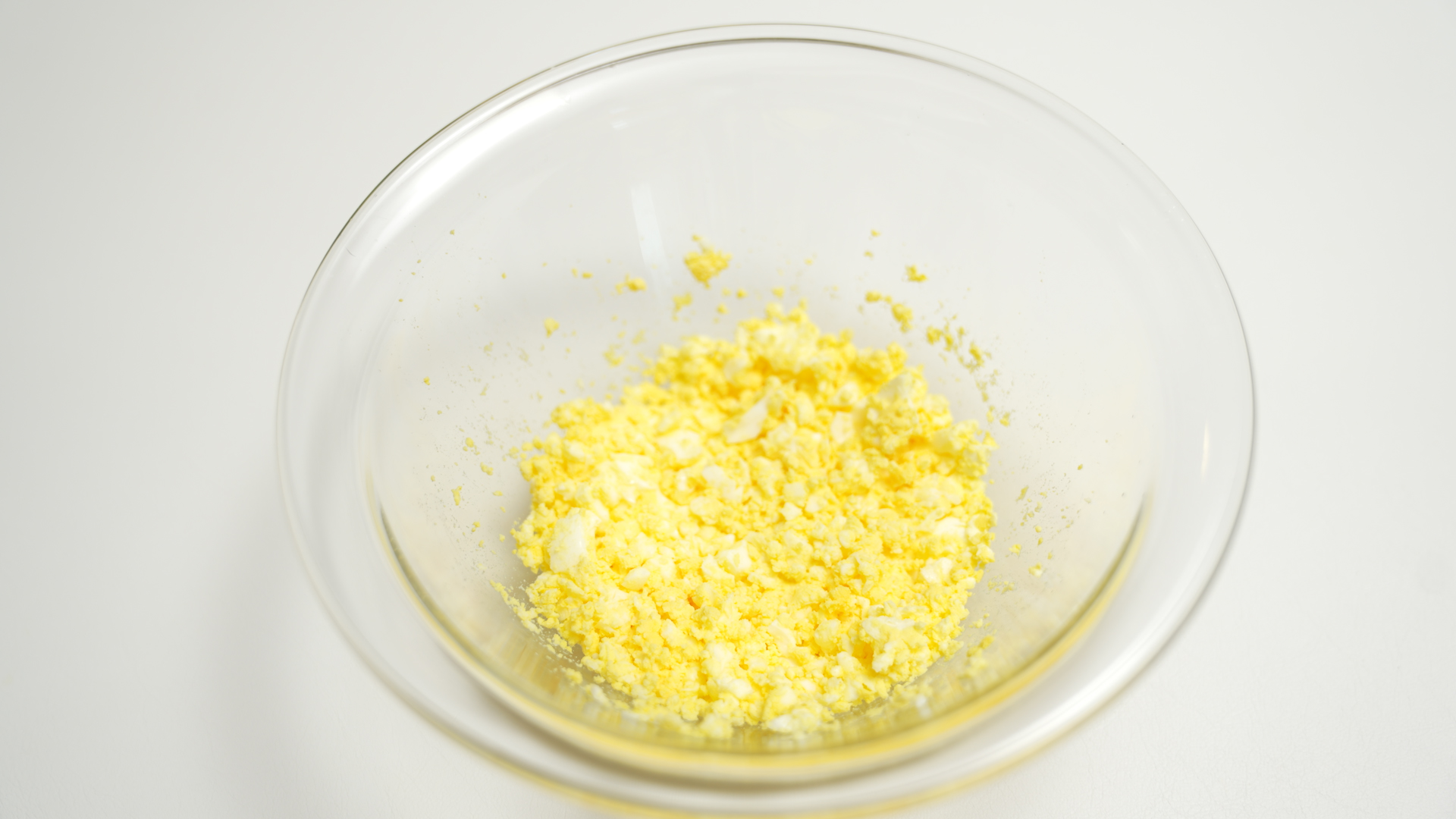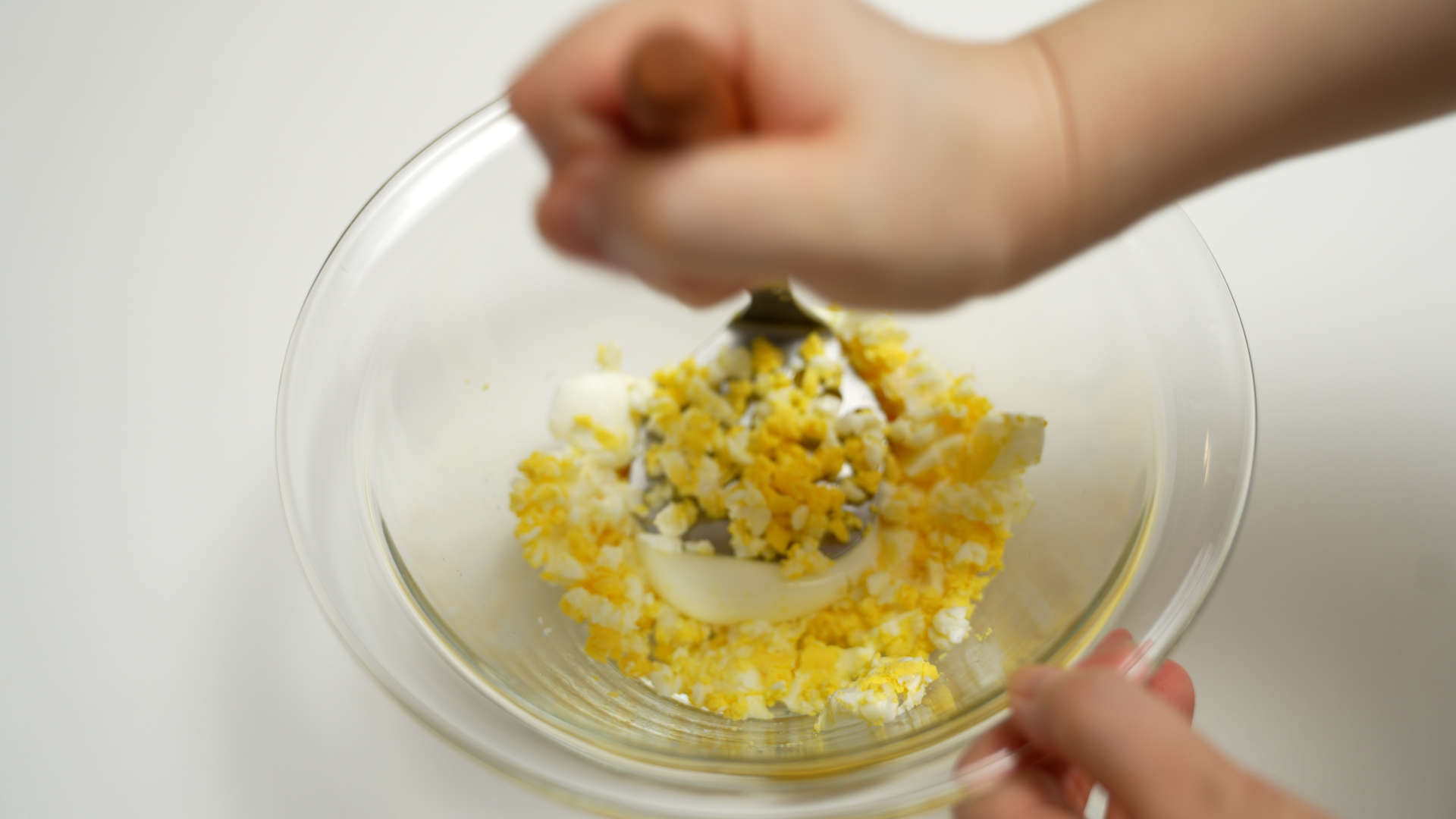 잘 삶아진 계란 3개를 큰 볼에 넣고,