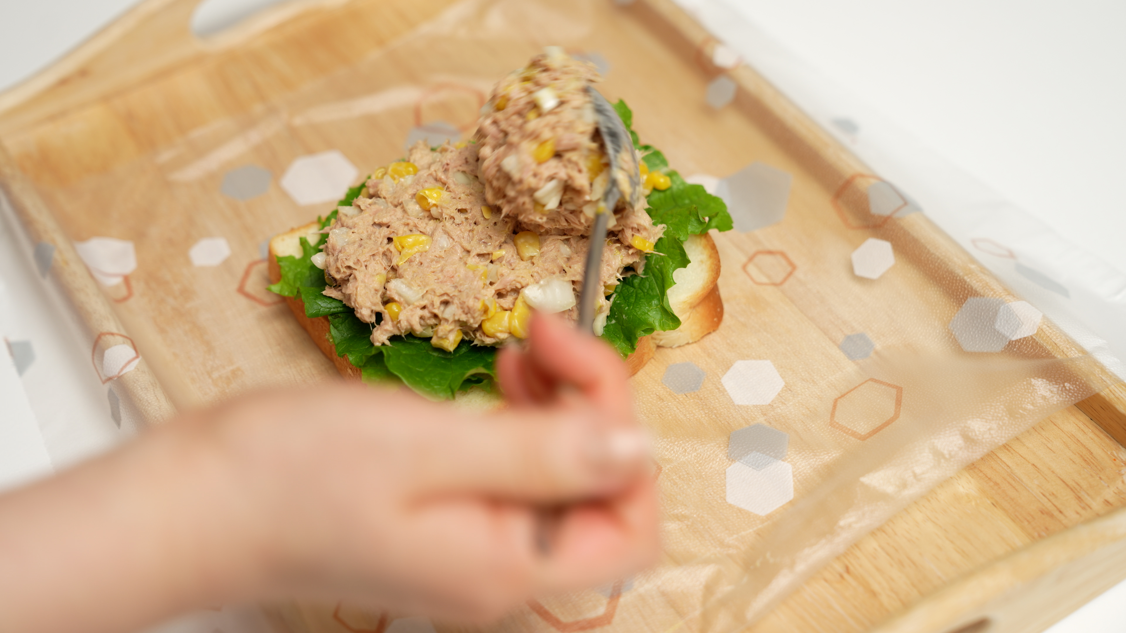 참치샐러드를 원하는 만큼! 듬뿍 올려주세요.